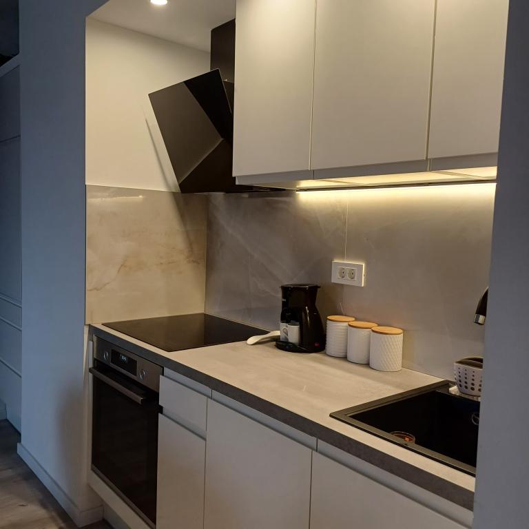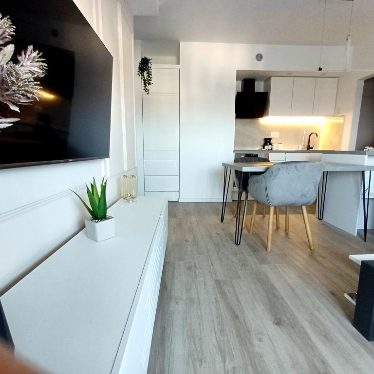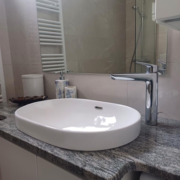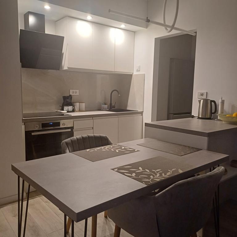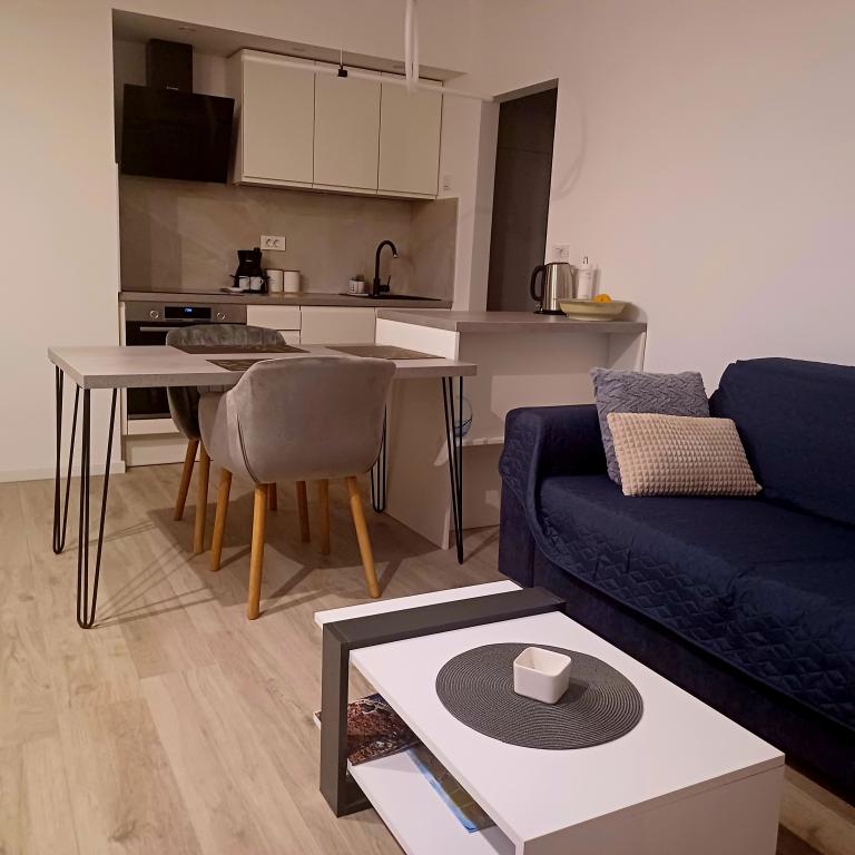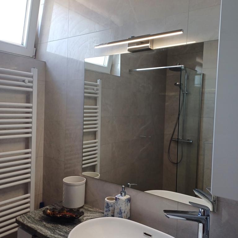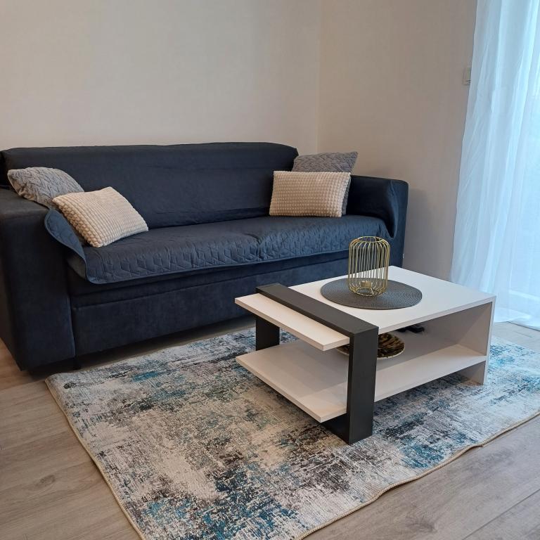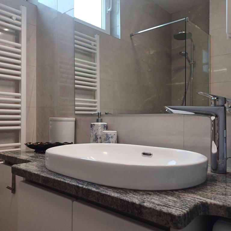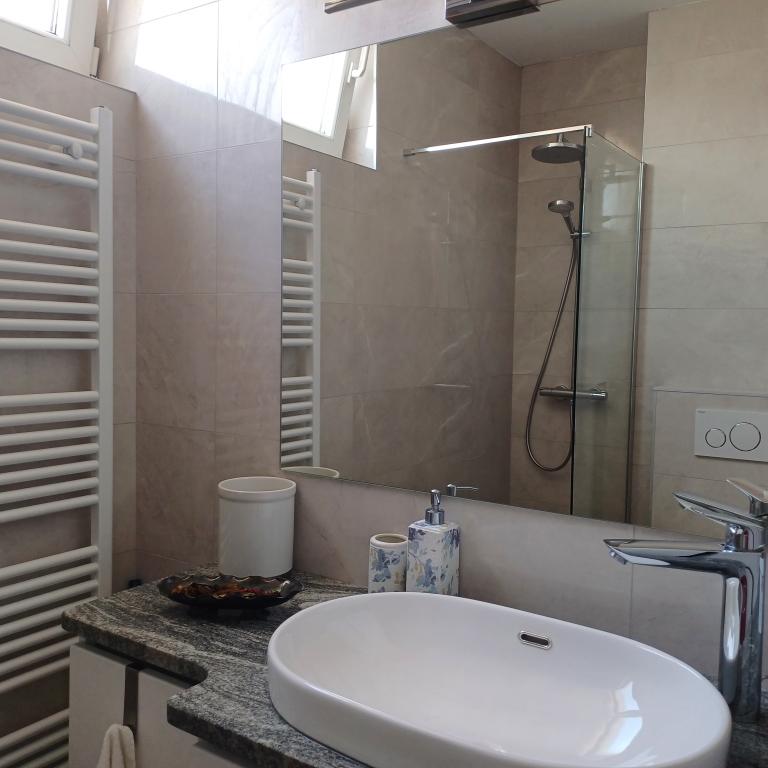 Luksuzno stanovanje se nahaja v 10. nadstropju stanovanjske stavbe v Šibeniku, na odlični lokaciji, 20 minut hoje od starega mestnega jedra in mestne plaže Banj. Luksuzna nastanitev z balkonom s čudovitim pogledom na morje in mesto nudi gostom prijetno in sproščujoče bivanje. Apartma je sestavljen iz prostorne spalnice, hodnika, kopalnice s kabino za prhanje, sušilcem za lase in pralnim strojem. Dnevna soba in jedilnica sta v prostoru s sodobno opremljeno kuhinjo za krajše ali daljše bivanje, ki vsebuje posodo, kuhinjske pripomočke, štedilnik, pečico, pomivalni stroj, hladilnik, kuhalnik vode in aparat za kavo. Apartma je klimatiziran, gostom pa je na voljo TV in brezplačen brezžični internet. Javno parkirišče se nahaja pred samo stavbo. Takoj ko zapustite stavbo in prečkate ulico, se na razdalji 30 m nahajajo trgovina z živili, lekarna in kavarna ter banka, pošta, picerija, telovadnica, frizerski salon, trgovski center, avtobusna postaja. , pristanišče za čolne je oddaljeno 700 m.