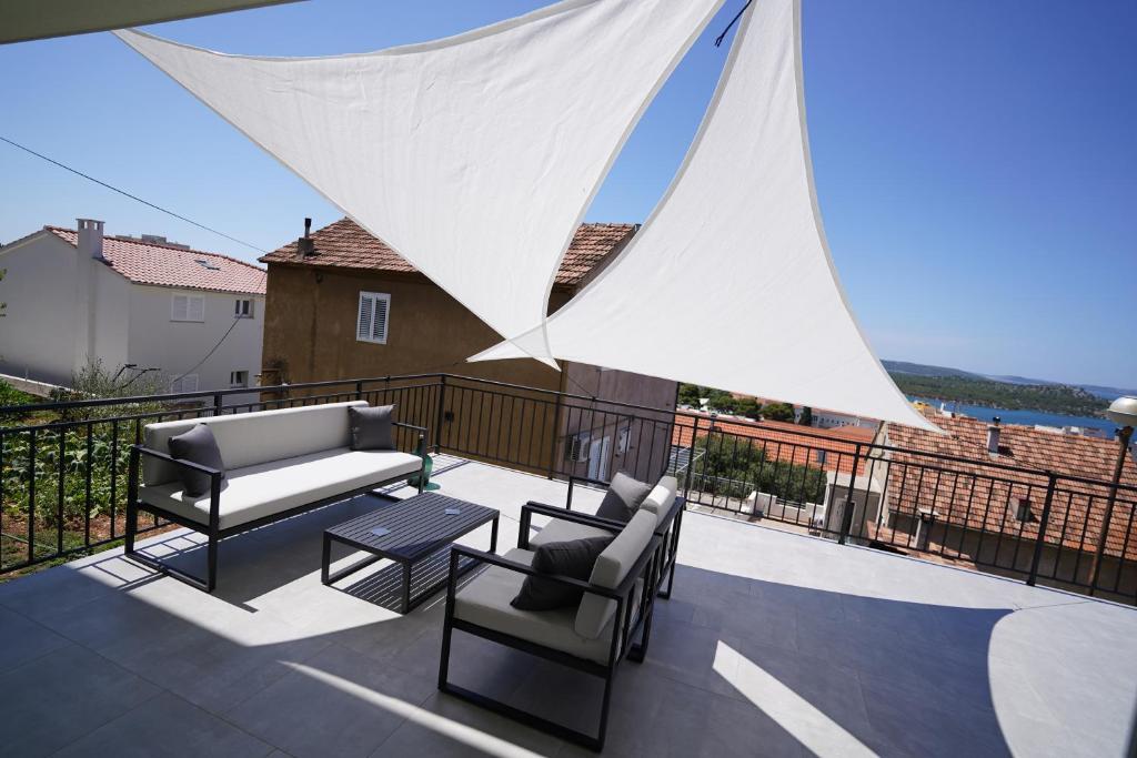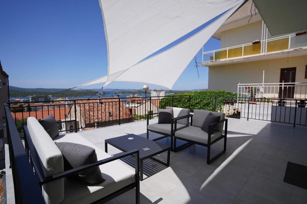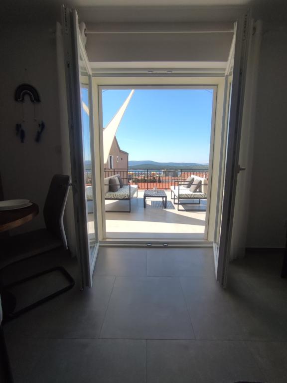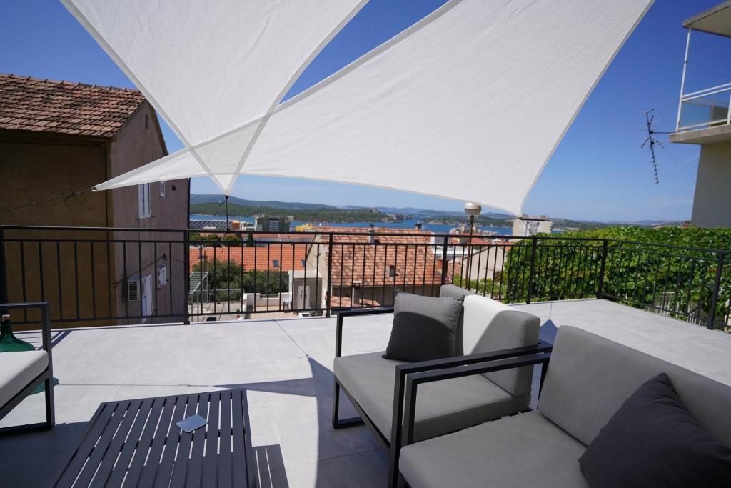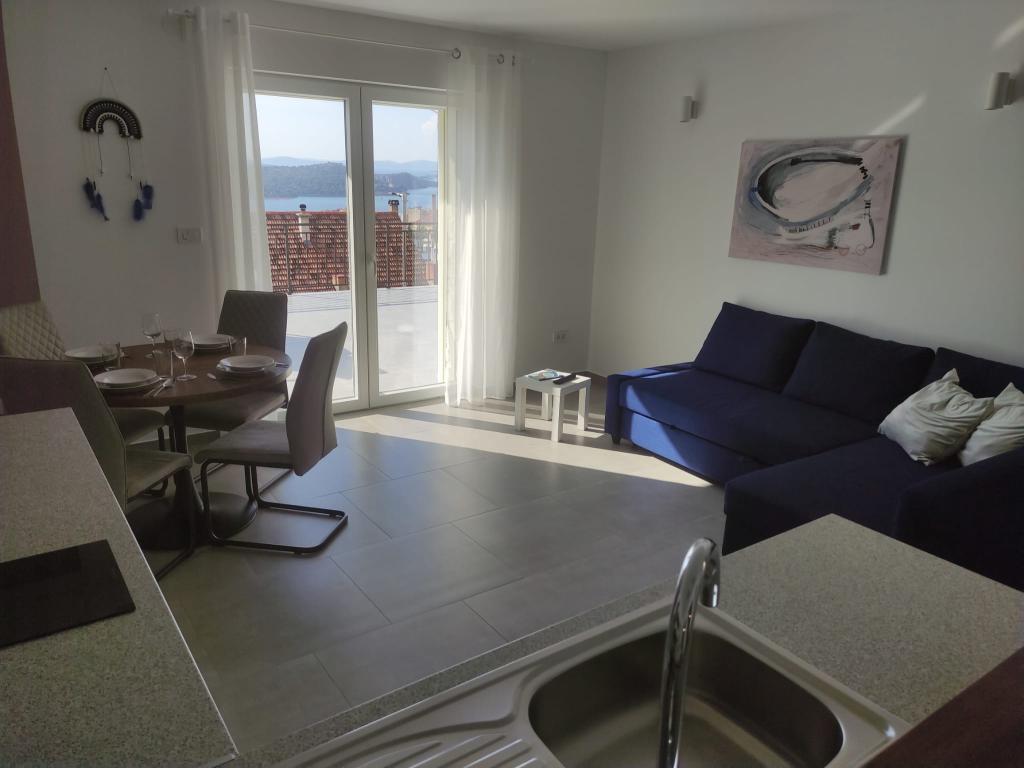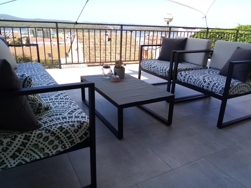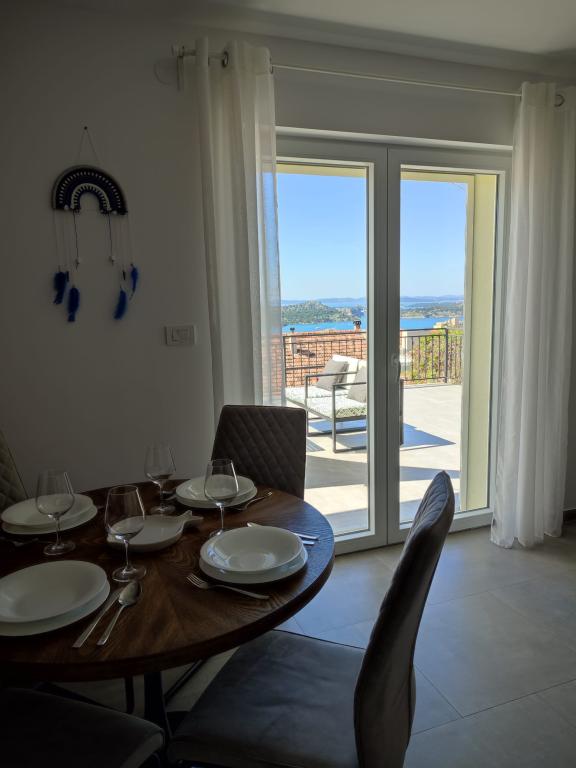 Apartma v mirnem delu mesta Šibenik Apartma se nahaja 10 minut hoje od starega mestnega jedra Šibenika in v neposredni bližini vseh mestnih vsebin. Morje je oddaljeno 500 metrov, najbližje plaže pa le 5 minut vožnje. Apartma je popolnoma opremljen in opremljen z vsemi potrebnimi pripomočki ter ima dostop do terase s čudovitim pogledom na šibeniški zaliv in mesto.