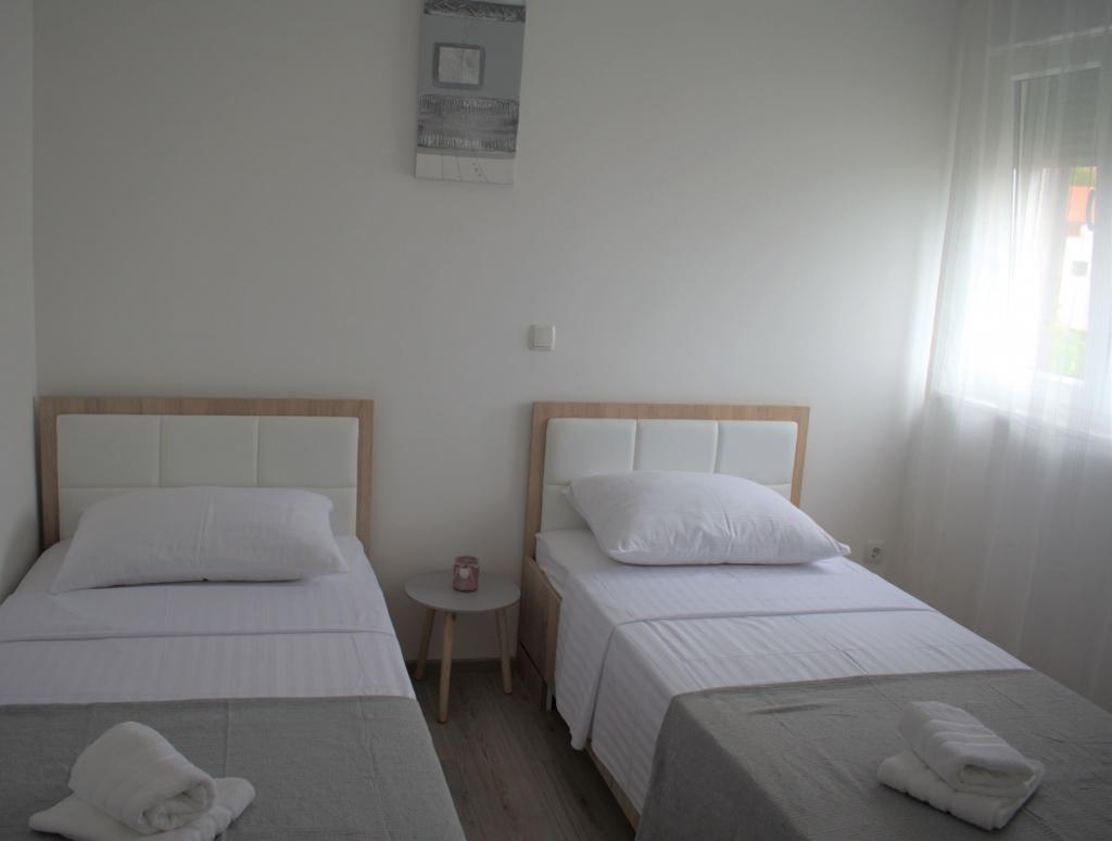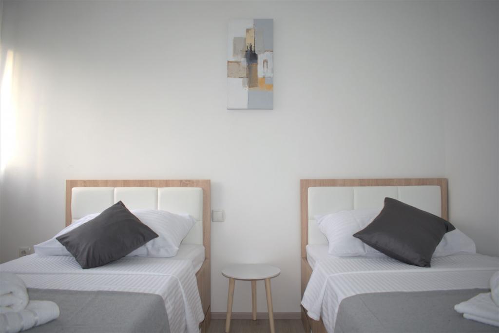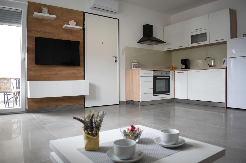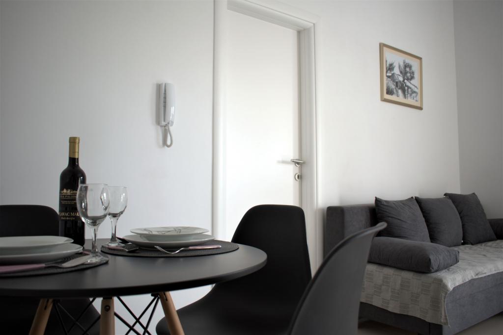 Popolnoma in sodobno opremljeni apartmaji v mirnem delu Šibenika s čudovitim pogledom na šibenski zaliv in mesto. Vse enote so klimatizirane in imajo brezplačno internetno povezavo. Parkirišče je brezplačno in se nahaja v stavbi, stavba je izboljšana Zunanji video nadzor. Vsaka enota ima svoj zunanji prostor (ložo ali balkon) s pogledom na okolje, morje in mesto. Objekt se nahaja 5 minut hoje od najbolj znane mestne plaže Banj, ki vključuje restavracijo, bar na plaži in športna igrišča. Prav tako je le 15 minut hoje od stavbe skozi tradicionalno srednjeveško predmestje Šibenik Dolac staro mestno jedro z lepimi zgodovinskimi arhitekturnimi dosežki, kot je katedrala sv. Jakova, ki je vključena na Unescov seznam svetovne dediščine, in trdnjava sv. Mihaela.