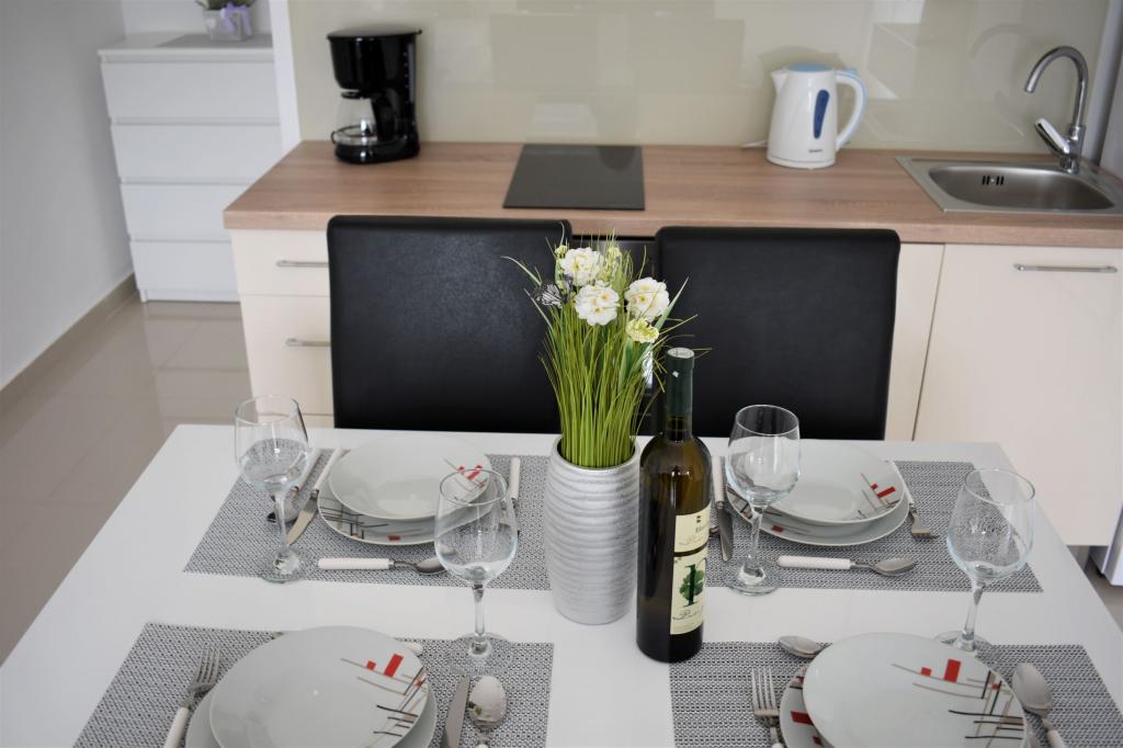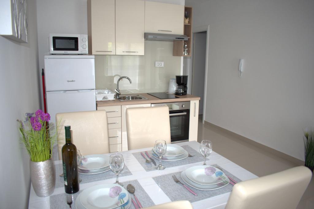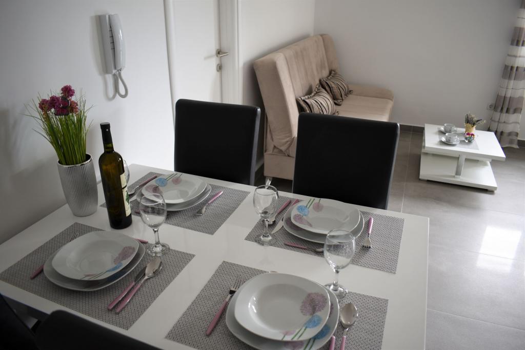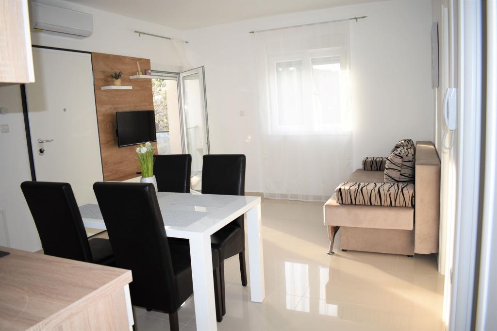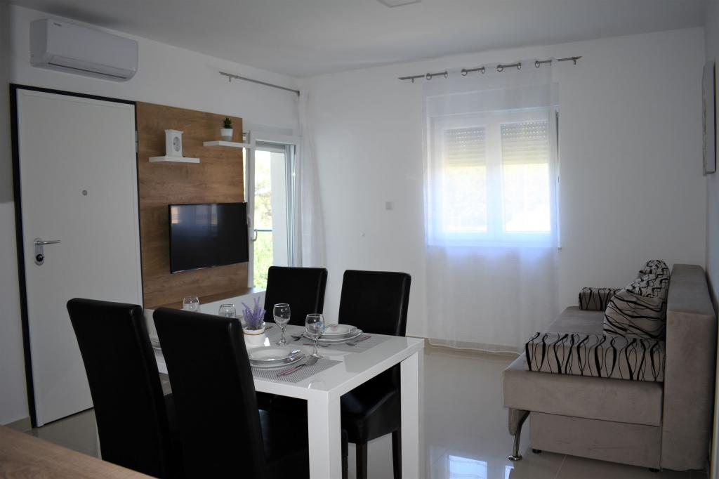 V apartmaju za štiri osebe smo bili štirje. Gostiteljica je bila prijazna in nevsiljiva. Na voljo je bilo vse, kar je potrebno za družinsko bivanje (pralni stroj, pečica, grelnik vode, posoda itd.). Pred apartmajem je dovolj parkirnega prostora, tako da vam ni treba skrbeti za parkiranje in plačevanje drugje. Lokacija je odlična, saj je zelo blizu plaže Banj, odlična pa je tudi za sprehod do trdnjave sv. Mihaela in katedrale sv. Jakoba, kjer so dobre restavracije in kavarne. Lepo in prijetno preživet čas.