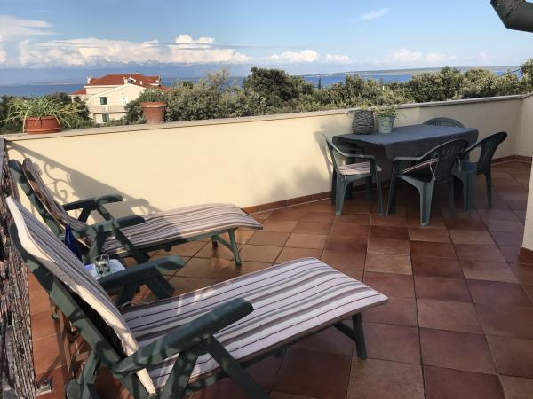 Apartma TENA (52 m2) se nahaja v prvem nadstropju nove družinske hiše. Je popolnoma opremljen in opremljen (klima, TV, internet). Ima dve spalnici z dvema posteljama, v dnevni sobi pa je možno uporabiti dodatno ležišče za 2 osebi. Kuhinja je prostorna in opremljena z vsemi potrebnimi aparati. Prostorna terasa ponuja čudovit razgled na morje, otoka Olib in Pag. Gostom je na voljo kamniti žar na dvorišču. Apartma se nahaja približno 200 metrov od morja. Oddaljenost od centra mesta (trgovine, restavracije, pošta in kavarne) je približno 3-5 minut hoje, do zahodne obale Silbe in čudovitih peščenih in skalnatih plaž pa se sprehodite v 5-10 minutah.