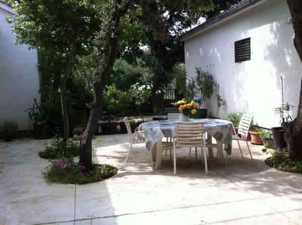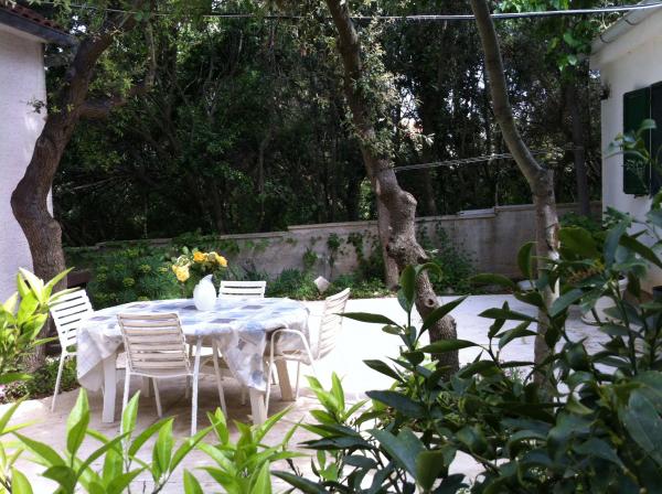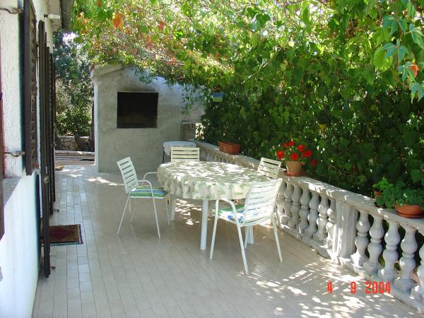 Družinska hiša, 54m2, 2 spalnici, dnevna soba, 4 2 ležišči (zakonska, dvema ločenima ležiščema 2 kavč postelj, če je potrebno), kuhinja s pomivalnim strojem, kopalnica, terasa z žarom, prekrito z vinsko trto, kot naravno zaščito pred soncem, TV SAT, Wi-Fi, flat, klima, otroška posteljica, če je to potrebno. Silba priporočamo družinam z majhnimi otroki, ker ne obstajajo avtomobili, starejših za počitek in mir, in romantiki radi lepe promenade na obeh straneh otoka.