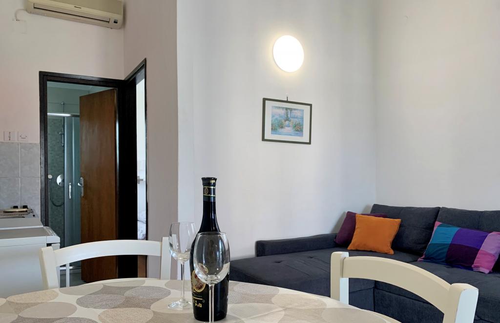 Priporočena namestitev. Lastnica Marija je prijazna, nevsiljiva. Velika terasa, v senci, s pogledom na morje. Apartma je čist, opremljen z vsem, kar potrebujete. Zagotovljeno parkirišče na dvorišču. Blizu peščene plaže, z naravno senco. Bili smo zelo zadovoljni.