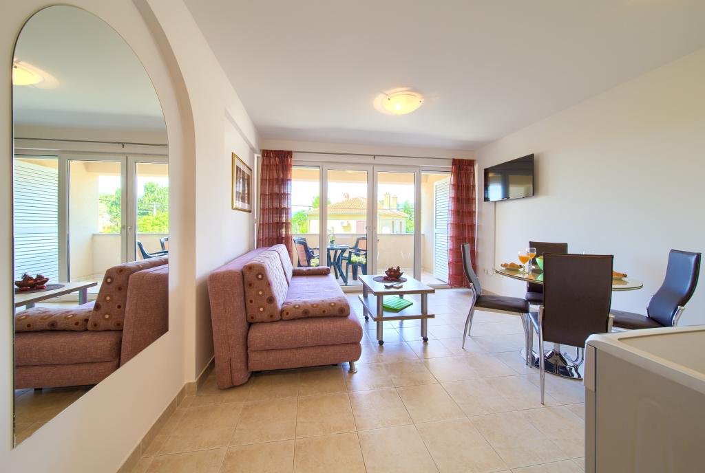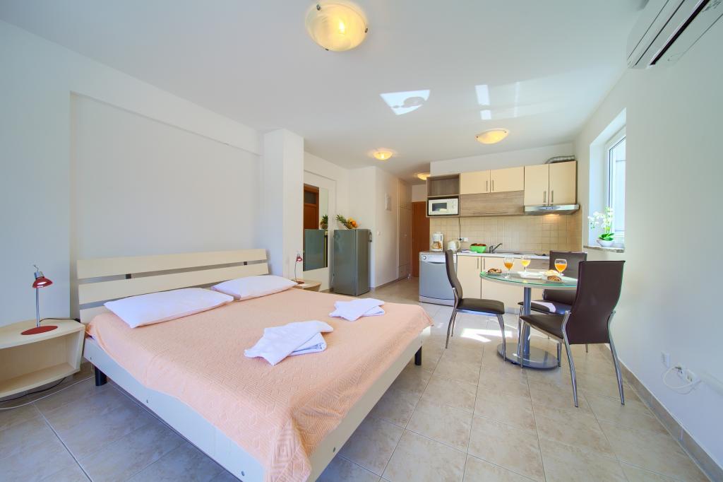 Naši apartmaji se nahajajo v družinski pol-samostojni stavbi in so nedaleč od centra Šila (približno 5 minut hoje). Apartmaji so povsem novi, moderno opremljeni, kategorizirani s štirimi zvezdicami in le približno sto metrov oddaljeni od morja in peščene plaže, ki je idealna za otroke. Vsak apartma ima zavarovano parkirno mesto.