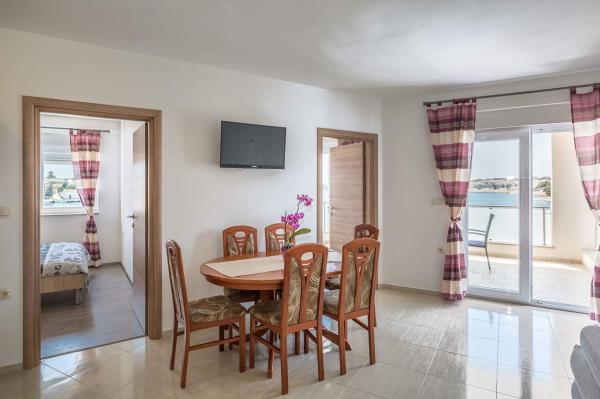 Novi in popolnoma opremljeni apartmaji se nahajajo v majhni ribiški vasici Šimuni, idealni za družinske počitnice. Vsak apartma ima svojo pokrito teraso s čudovitim pogledom na morje. Na dvorišču hiše je žar, vrtni tuš. Parkirišče za avto je zagotovljeno. V neposredni bližini apartmaja se nahajajo trgovina, ribarnica, restavracije in menjalnica.