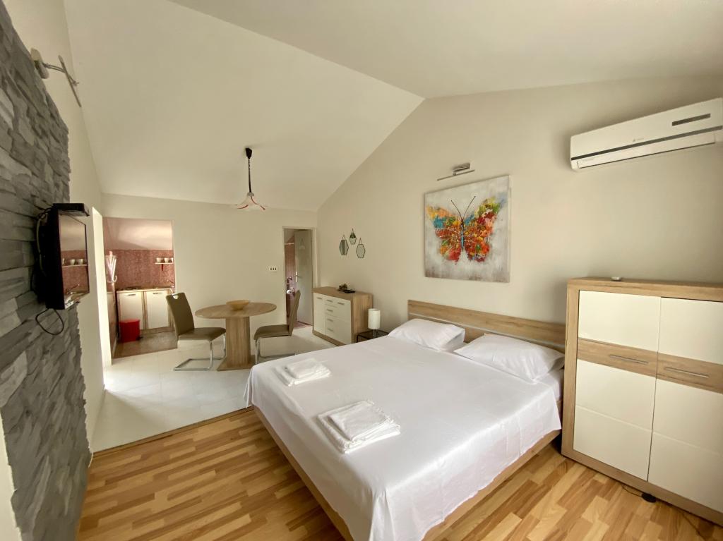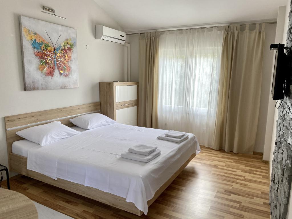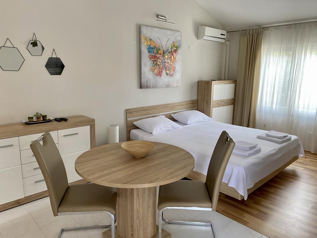Hiša se nahaja na mirni lokaciji, prva vrsta do morja, manj kot minuto hoje od plaže, restavracij s hitro prehrano in drugih ugodnosti na plaži. V hiši so trije apartmaji, od tega sta apartmaja M1 in M2 v prvem nadstropju, apartma M3 pa v pritličju. Vsi apartmaji so v celoti in sodobno opremljeni.