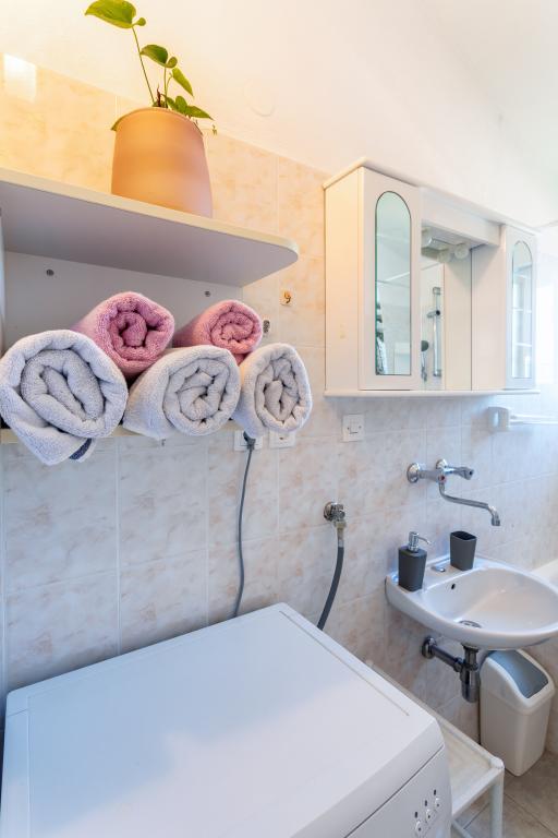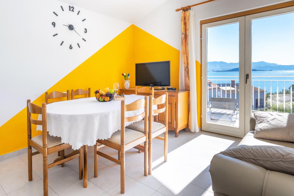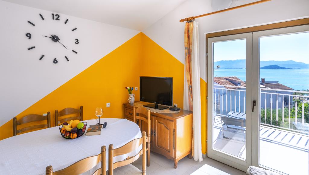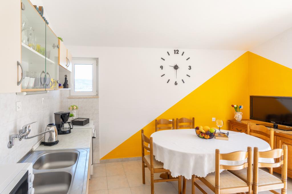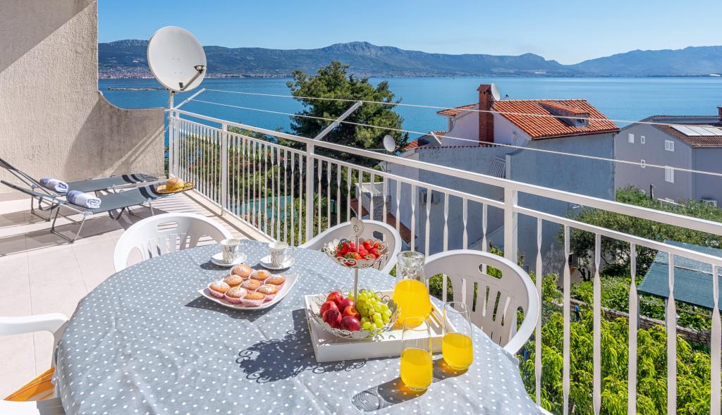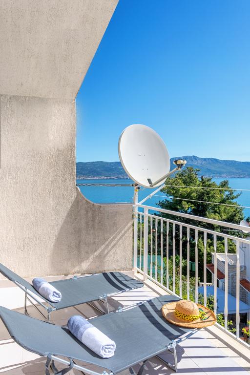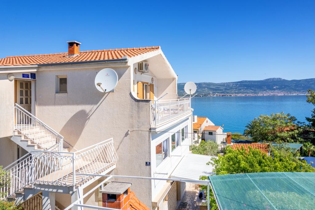 Apartma Stella se nahaja v mirnem turističnem mestu Slatine na otoku Čiovo. Nahaja se le 80 metrov od morja in ponuja čudovit pogled na mesto Split in Kaštelanski zaliv. Ravno zaradi tega je ta objekt idealen kraj za prijetne in sproščujoče poletne počitnice.
