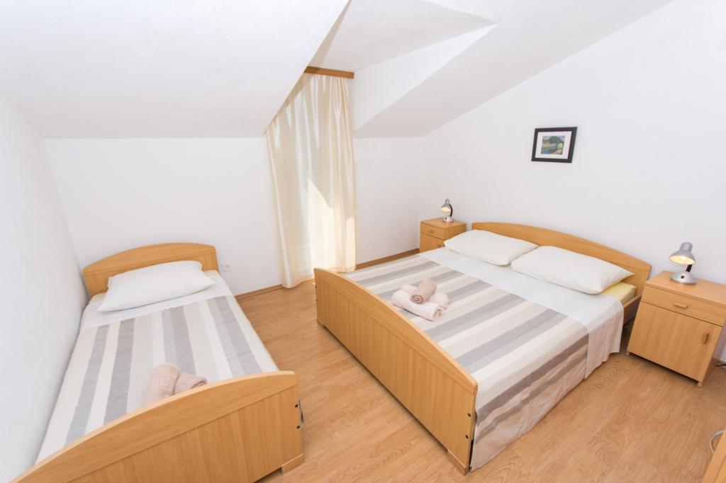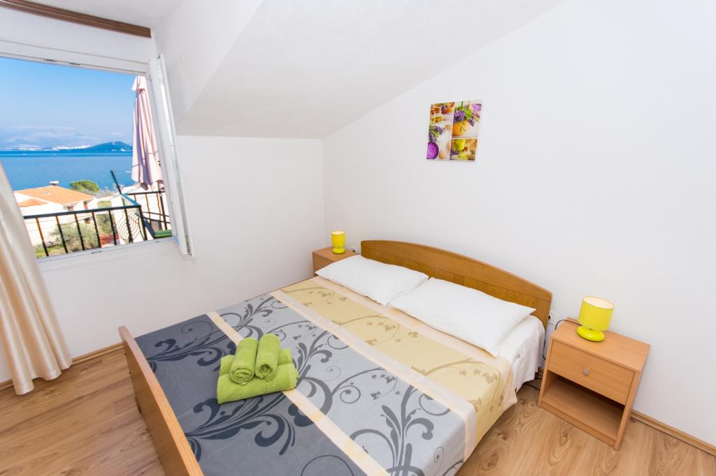 Apartmaji Anka se nahajajo v Slatinah na otoku Čiovo.Od Trogirja so oddaljeni 5 km.S Splitom so povezani z ladjo.Apartmaji se nahajajo v prvem in drugem nadstropju družinske hiše.Apartma za 6 oseb je nahaja se v prvem nadstropju in je sestavljen iz 3 sob, dnevne sobe, kuhinje in kopalnice.V drugem nadstropju sta dva apartmaja, vsak z dvema sobama, kuhinjo in kopalnico.Vsi apartmaji imajo terase s čudovitim pogledom na morje. Vsi apartmaji imajo ločen vhod.Hiša je obdana z mediteranskim rastlinjem in vrtom za otroke.Gostom je zagotovljeno parkirišče in uporaba zunanjega žara.