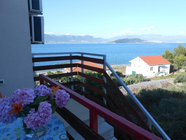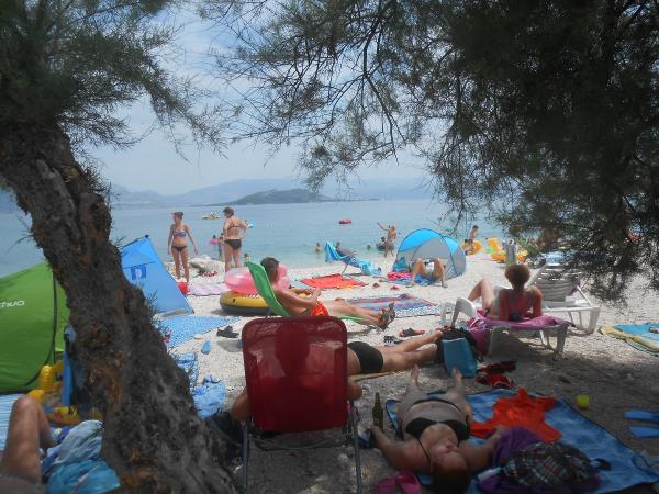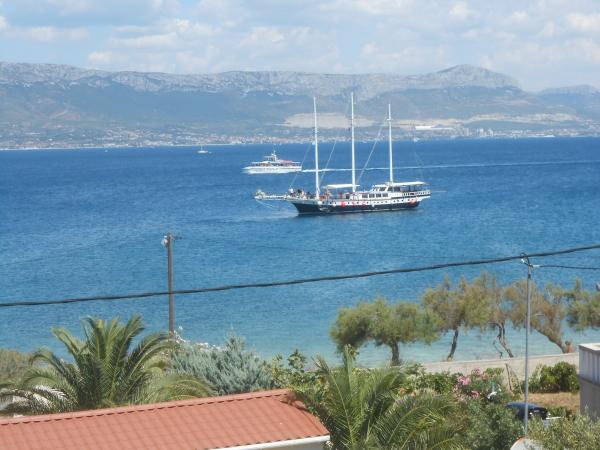 Pri gospe Ivanki smo se počutili zelo prijetno, stanovanje je bilo čisto, dobro opremljeno, na vseh oknih so bile mreže. Gostiteljica je zelo prijazna gospa, priskrbela nam je vse, kar smo potrebovali. Hiša je res blizu plaže in hkrati pod gozdom, tako da večino časa ni bilo potrebe po klimi, tam je bil prijeten zrak iz gora (in živeli smo na podstrešju). Plaža je čista, prodnata, neobljudena. Bližina in dobra dostopnost dveh čudovitih zgodovinskih mest - Trogirja in Splita (z avtom, javnim prevozom, ladjo). Vozovnica za ladjo Slatine - Split stane 5,50 evra