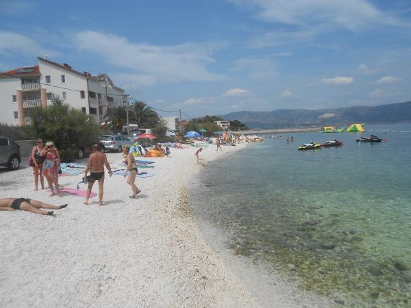 Turistična taksa je vključena v ceno.Gostje imajo dostop do parkirišče, vrt, žar z veliko mizo v senci, zunanji tuš, mirno okolje. Hiša se nahaja na območju plaž, ki se raztezajo na več kilometrov. Najbližja plaža je pred hišo, ki se nahaja primerno približno 50 m za otroke. Center mesta in vse objekte, potrebne za prijetno bivanje in aktivnih počitnic so 800 m. Slatina a turistične ladje, povezane z bližnjimi mesti Split in Trogir. Obe mesti, ki segajo do antičnih časov, pod zaščito Unesca, znani po svojih spomenikov (npr .. Dioklecijanova palača v Splitu starem 1700 g). Enodnevni ali poldnevni izlet lahko upznati lepih dalmatinskih otokov in mest, narodnih parkov in naravnih lepot.