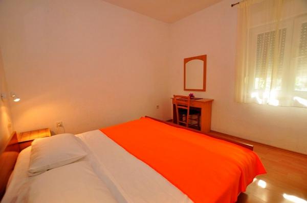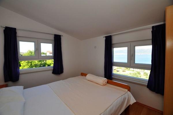 Hiša se nahaja v družinski hiši. V 3 apartmaji lahko sprejme skupno 16 oseb. Apartma A1 (6 2), 65 m2, za 8 oseb, 3 spalnice (dve z zakonsko posteljo), na kavču v dnevni sobi za 2 osebi, opremljena kuhinja, kopalnica s kadjo in WC-jem, ločen WC, velik orgadena 40 m2 terase s pogledom na morje. To je v celoti opremljen in klimatiziran. Nahaja se v pritličju in s pogledom na morje. Primerno za dve družini z otroki. Apartma A2 (2 2) in 35 m2 za 4 osebe. Spalnica z zakonsko posteljo, dnevno sobo / kuhinjo z kotiček kavčem za dve osebi, kopalnica s tušem, teraso. Popolnoma opremljen in klimatiziran. Nahaja se v drugem nadstropju hiše, s pogledom na morje. Stanovanje A2 (2 2) b, 24 m2, za 4 osebe. . Spalnica z zakonsko posteljo, dnevna soba s kavčem, popolnoma opremljena kuhinja, kopalnica s tušem, teraso s čudovitim pogledom na morje in hribe, ki se nahaja v drugem nadstropju. .