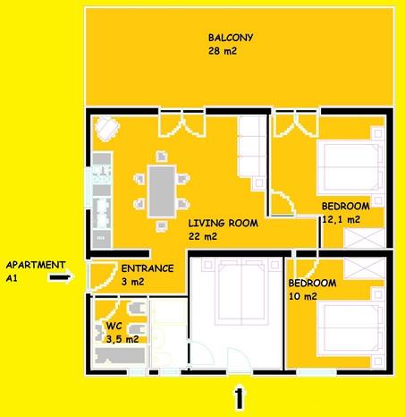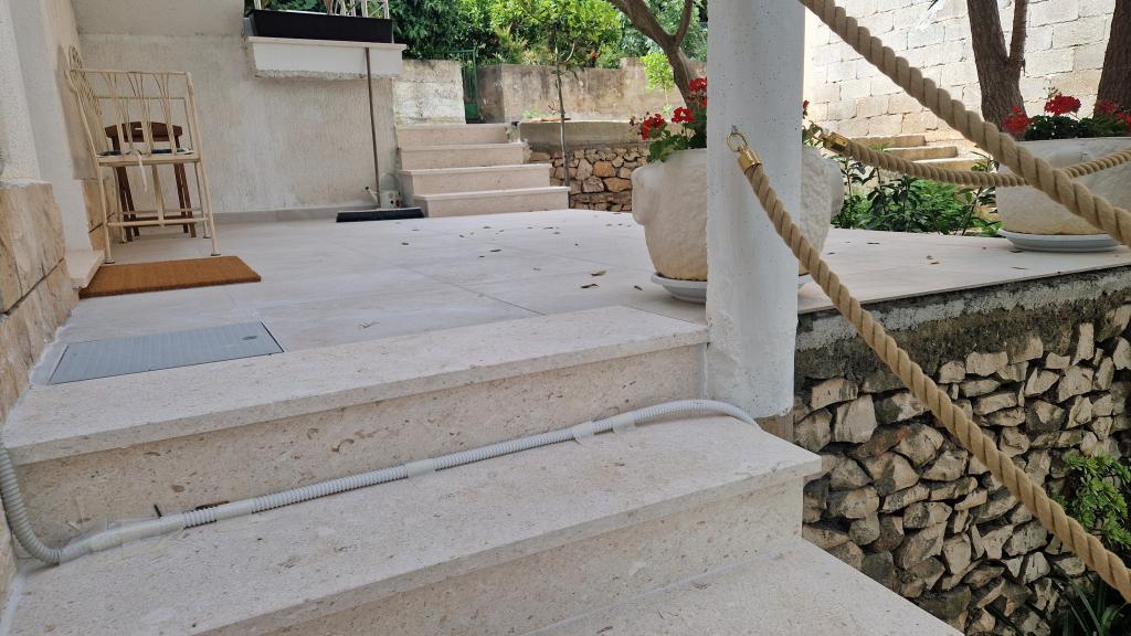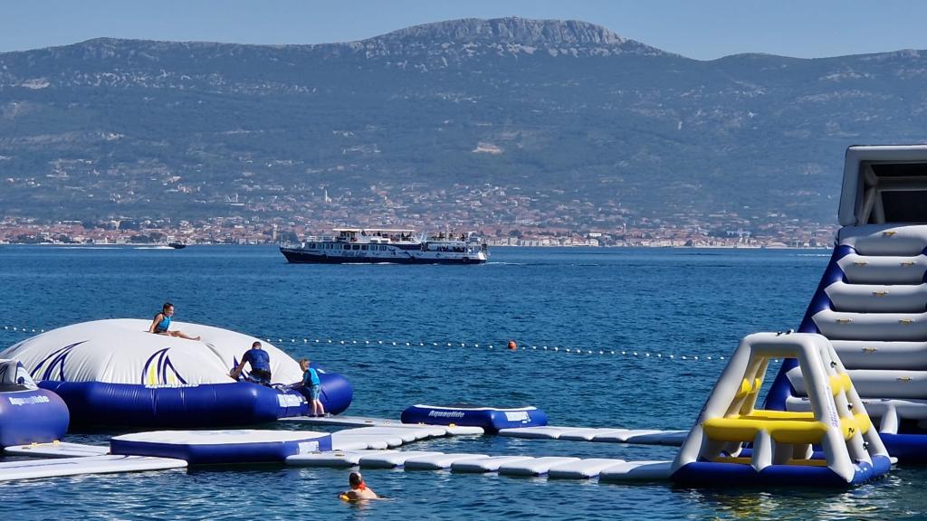 Apartmaji se nahajajo v mirnem okolju v prvi vrsti do morja. Parkirišče je zagotovljeno. Od mesta Slatina so oddaljeni deset minut hoje, toliko pa je tudi do tržnice. Do Trogirja in Splita lahko pridete tudi z ladjo v pol ure. Letališče je oddaljeno pol ure vožnje. Cene apartmajev vključujejo turistično takso, brezplačno parkiranje, neomejeno uporabo klime, čistilne storitve. Minimalno bivanje je pet nočitev. Pridite in uživajte v morju in soncu...