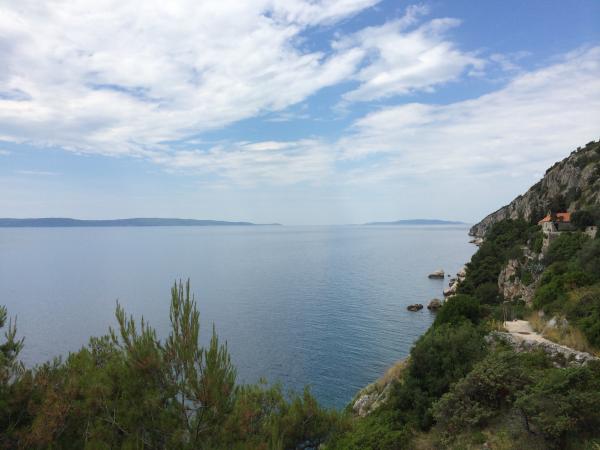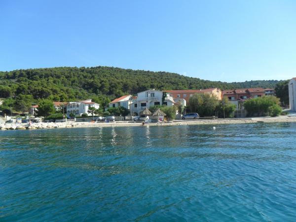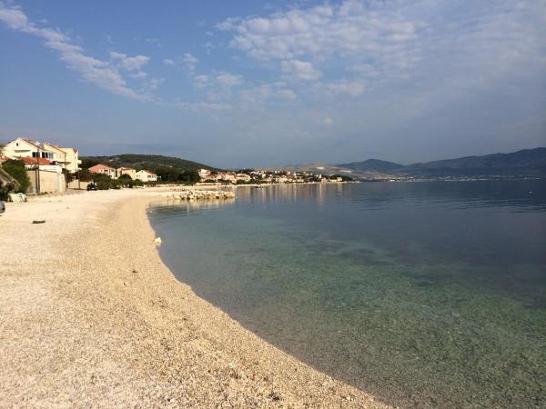 Apartmaji se nahajajo zelo blizu plaže s čudovitim pogledom na morje. Zelo čisto, opremljeno z vsem potrebnim. Lastnica je zelo prijazna, ustrežljiva in skrbi za svoje goste. Urejena plaža z drobnimi kamenčki in zunanjim tušem. Mesto v mirnem okolju. Vendar pa je blizu barov, restavracij in vodnega igrišča. Blizu izletov v Trogir in Split. Do tja lahko pridete z javnim prevozom in trajektom.