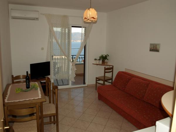 Gradbišče, opisi mestu in fotografije stanovanj in se strinjam z realnostjo. odličen kraj za miren sproščujoč oddih. Lastniki zelo prijazni, apartmaji so čiste, objekti ustrezen opis. Definitivno priporočam to možnost in bi ga doporučula kot prijatelji, sorodniki in veliko prednost, da je tako stanovanje in plaža stran od prometa in ceste. Plaža je lepa, majhna, prodnata, kristalno čisto morje. Kdo ima rad malo širša počitnice, vse na voljo v bližini. Trogir dober dostop do lokalnim avtobusom in ladjo, lep izlet. Čoln in dober dostop do Splita.