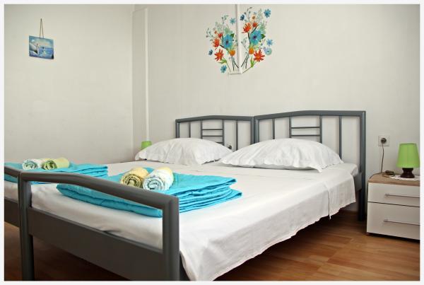 Bivali smo v velikem apartmaju in smo zelo zadovoljni. Stanovanje je večje, lepše in bolj opremljeno, kot je na slikah. Plaža je dobesedno čez cesto, kar je super, sploh za tiste, ki imamo majhne otroke. Apartma ima tudi balkon in teraso s čudovitim pogledom na morje. Lepa lokacija apartmaja, čudovito in čisto morje. Lastniki so vljudni in nevsiljivi. Naša priporočila vsem!