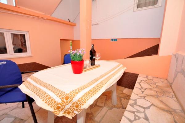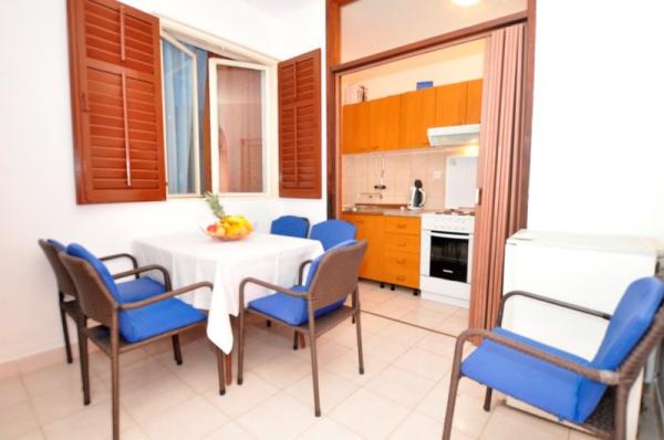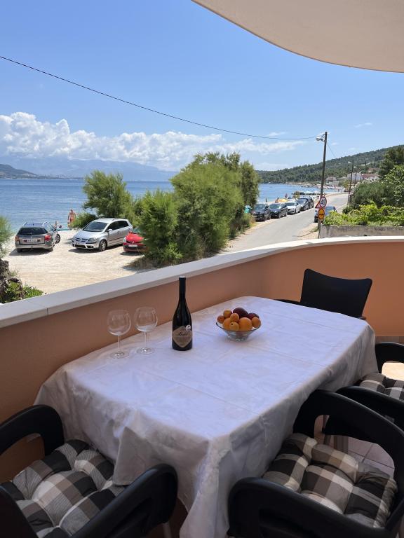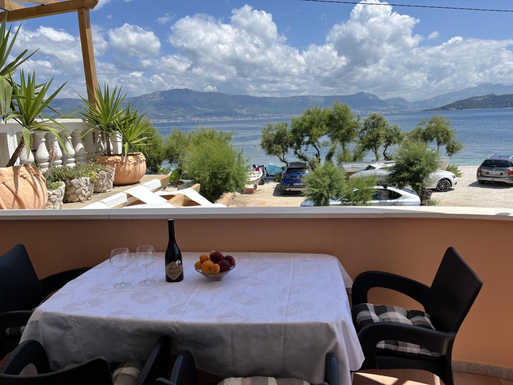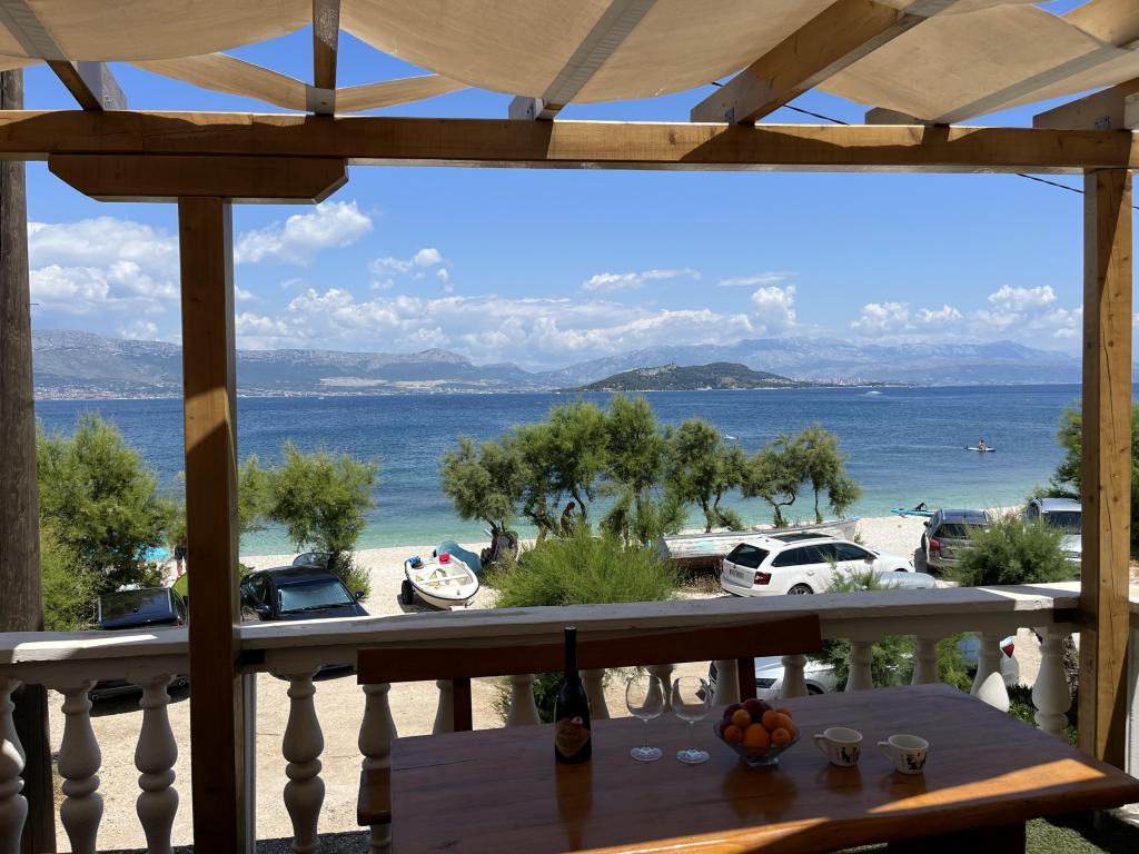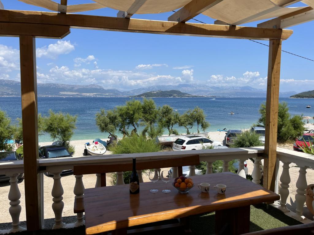 Apartmaji se nahajajo v neposredni bližini plaže, le 10 metrov stran, s čudovitim pogledom na morje. Zelo čisti, opremljeni z vsem potrebnim. Lastnica je zelo prijazna, ustrežljiva in skrbi za svoje goste. Urejena plaža z drobnim kamenčkom in zunanjim tušem. Kraj je na mirnem območju. Vendar je blizu barov, restavracij in vodnega igrišča. Blizu izletov v Trogir in Split. Do tja lahko pridete z javnim prevozom in trajektom.