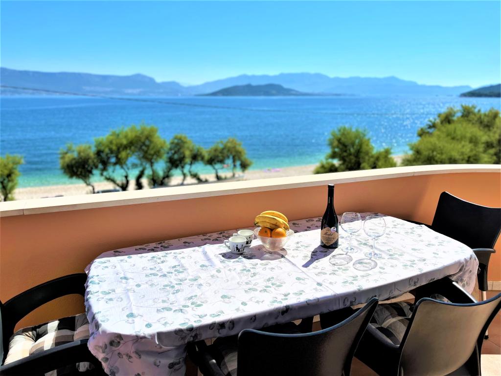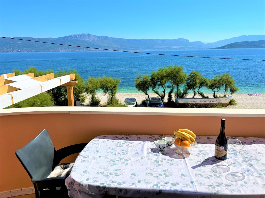 Popolnoma in moderno opremljeni apartmaji v mirnem predelu Slatine, ki se nahajajo v prvi vrsti do morja, 8 metrov hoje do plaže; objekt se nahaja 4 minute hoje do centra. Pred apartmaji je prodnata plaža, idealna za kopanje. S terase apartmaja je čudovit pogled na plažo, morje, Kaštelanski zaliv, Split, Trogir in samo mesto Slatina. Apartmaji so udobni, opremljeni s satelitsko televizijo, brezžičnim internetom in klimatsko napravo. Na vrtu hiše je gostom na voljo letni tuš in žar. Za goste apartmajev je zagotovljeno parkirišče. Slatine so majhno ribiško mesto, kjer lahko kupite sveže ribe, domačo zelenjavo in oljčno olje. Poleti potekajo festivali in športni dogodki. Restavracije, picerije, taverne, kavarne in trgovine se nahajajo v samem centru mesta, le 4 minute hoje ob morju od našega objekta. Na južni strani otoka Čiovo, le 2 km od apartmaja, se nahaja znamenito svetišče Gospe od Prizidnice, ki ga vsekakor morate obiskati.