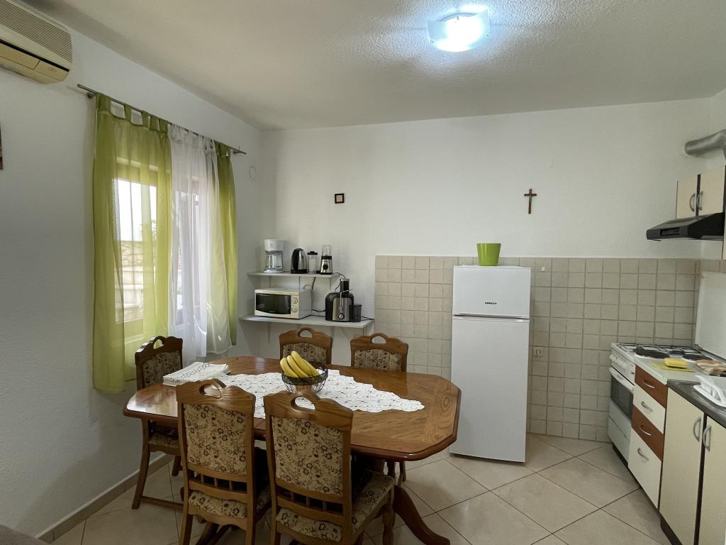 Nastanitveni objekt se nahaja v lepem, mirnem in privlačnem mestecu Slatine, ki je 6 km oddaljeno od mesta Trogir, ki je pod Unescovo zaščito, 30 km od mesta Split, ki je pod Unescovo zaščito. Objekt je od prodnate plaže in morja oddaljen le 50 m. Objekt ima pogled na morje. Nastanitev je obdana z mirom, tišino in dobronamerno sosesko. Nastanitev ima lastno ograjeno parkirišče, ki je brezplačno. Namestitveni objekt je sestavljen iz dveh namestitvenih enot (Apartma A4 + 2 in Apartma A4.). Vsaka nastanitvena enota ima eno brezplačno parkirno mesto na dvorišču nastanitvenega objekta. Apartma A4 + 2: Površina apartmaja je 65 m2, obsega veliko dnevno sobo in kuhinjo, 2 veliki spalnici z zakonsko posteljo, veliko stranišče in dve veliki terasi, na eni terasi je kamin za žar. Namestitvena enota lahko sprejme največ 6 oseb (4 odrasli + 2 odrasli osebi na zložljivem kavču v dnevni sobi.) Namestitvena enota ponuja zložljivo posteljico. Apartma A4: Površina te namestitvene enote je 45 m2. Sestavljen je iz dnevne sobe in kuhinje. Ena soba z zakonsko posteljo in ena soba z 2 posteljama in eno majhno stranišče. Namestitvena enota ima veliko teraso z delnim pogledom na morje. Na terasi je kamin za peko na žaru. V nastanitveni enoti lahko bivajo največ 4 osebe. Namestitvena enota ponuja otroško posteljico Znamenitosti Slatin: Najbolj znana znamenitost Slatin je svetišče Gospe iz Prizidnic in cerkev Marijinega vnebovzetja. Mesto Trogir: Trogir je eno v nizu mest v Dalmaciji, ki so pod zaščito Unesca. Trogir so ustanovili že stari Grki in je skozi stoletja postal najbolje ohranjeno romansko-gotsko mesto v Evropi. Pravzaprav pravi grad-muzej. Poleg dobro ohranjenih zidov, stolpov in mestnih vrat si tukaj lahko ogledate čudovite mestne palače, številne cerkve in samostane ter katedralo z edinstvenim portalom. Z