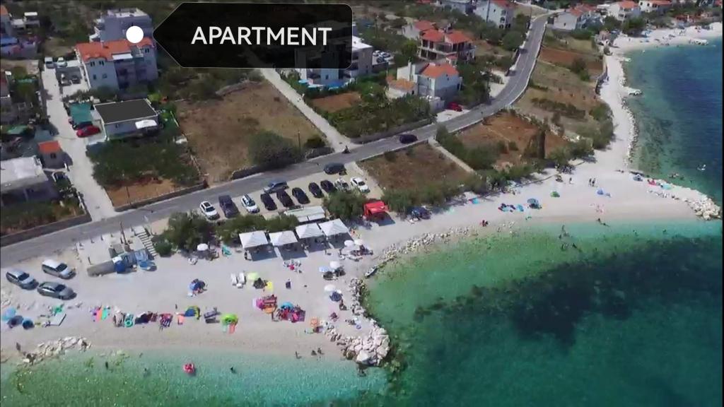 Pozdravljeni! Z veseljem vam predstavljam apartma v Slatinah na otoku Čiovo! Apartma se nahaja v Slatinah, v neposredni bližini morja 40m (plaža na sliki) na mirnem mestu, prijetnem za družinske počitnice. Apartma je opremljen s klimatsko napravo, internetom, TV-jem in satelitsko anteno. Parkirišče je zagotovljeno za dve vozili. Se vidimo v Slatinah