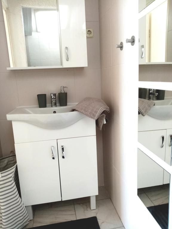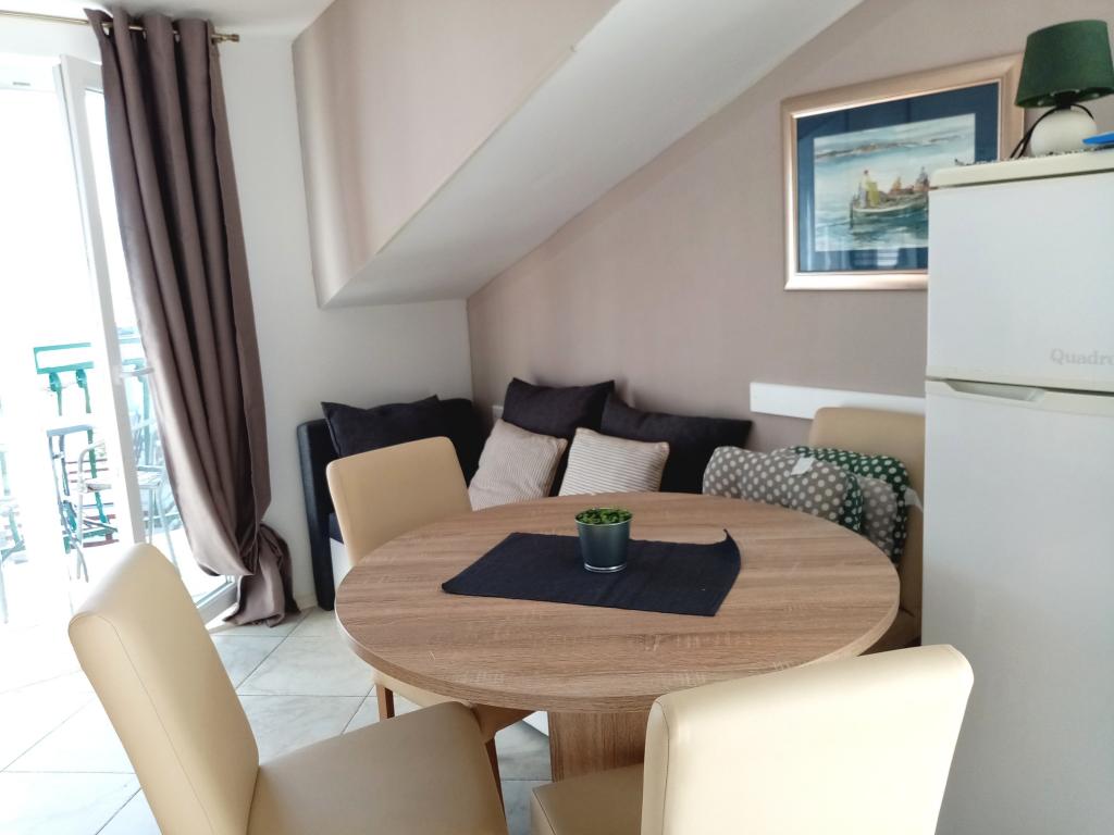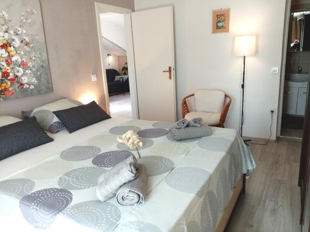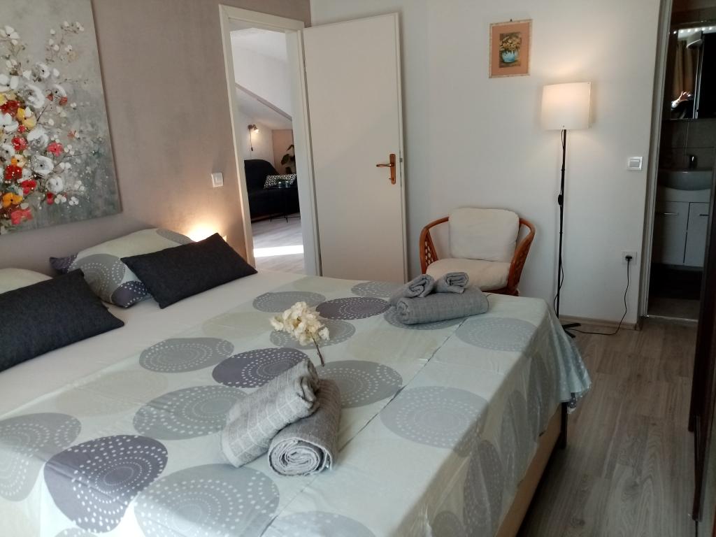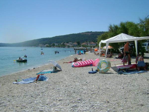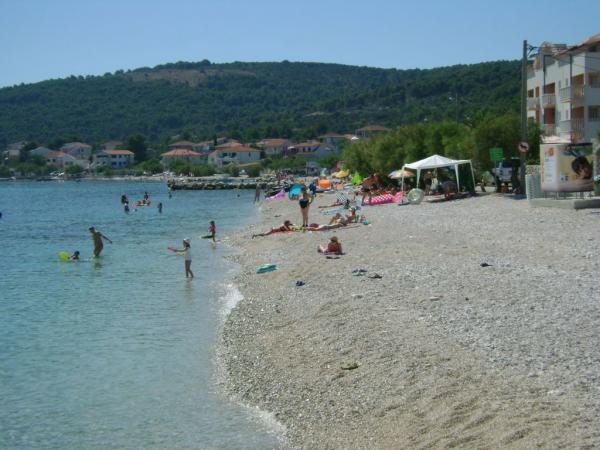 Lepo čisto stanovanje, opremljeno s pralnim in pomivalnim strojem, blizu plaže, restavracij in trgovin. Brisače na voljo. Gospa Željka zelo prijazna in ustrežljiva. Lep vrt s trampolinom, ki ga bodo še posebej cenile družine z otroki. V bližini je pristanišče, kjer se lahko vkrcate na ladjo Bura Line in se po zelo ugodni ceni odpravite v Split ali Trogir. Do Trogirja lahko uporabite tudi mestni avtobus.