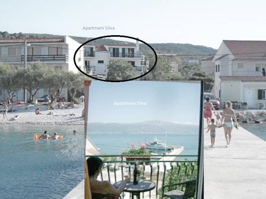 APARTMAJI SILVA / Trogir-otok ČIOVO / v CENTRU majhnega ribiškega in turističnega mesta, na otoku, otok je z mostom povezan z mestom TROGIR - mesto UNESCO. Otok Čiovo je oddaljen 10 km od avtoceste in 10 km od letališča, kar je pomembna ugodnost za turistična potovanja iz vseh delov EU in sveta. Apartmaji v samem centru, prostori, dodatno opremljeni, prijeten in miren kraj za počitek. Apartmaji imajo pogled na morje. Vsa vsebina je oddaljena 50-100 m (plaža, tržnica, kavarne, restavracije, taverna, picerija, otroški zabaviščni park, športno igrišče, vsa ponudba za zabavo na morju, najem koles, skuterjev, čolnov, izleti z ladjo na bližnje otoke. . .). Prostorno okolje apartmaja je v mediteranskem stilu, z zasebnim parkiriščem, zunanjim žarom, zunanjim solarnim tušem... . Če se odločite preživeti počitnice v naših apartmajih, verjamemo, da nas boste prepoznali kot prijetne in prijazne gostitelje. dobrodošli