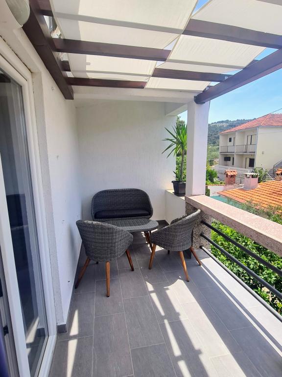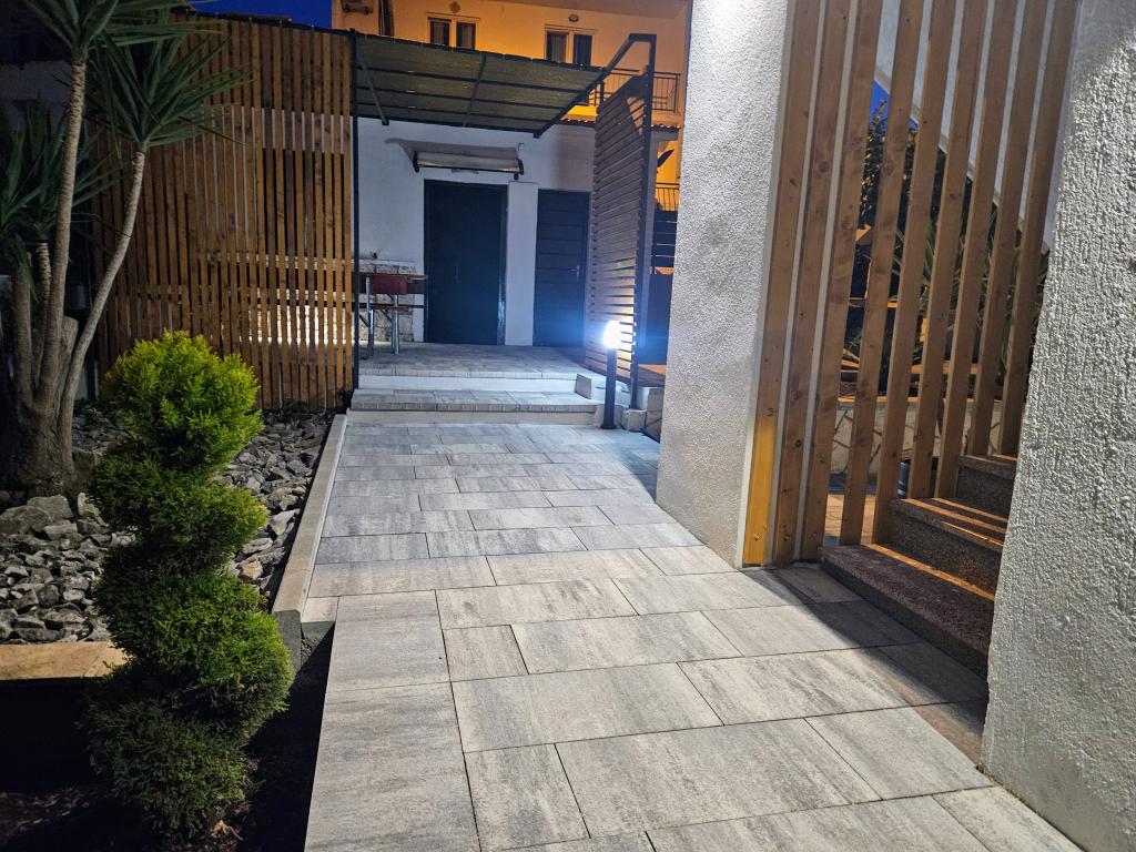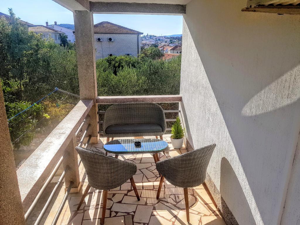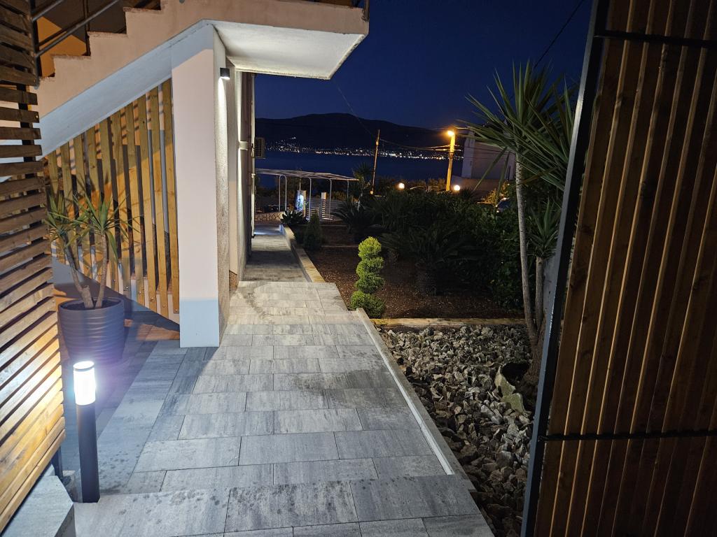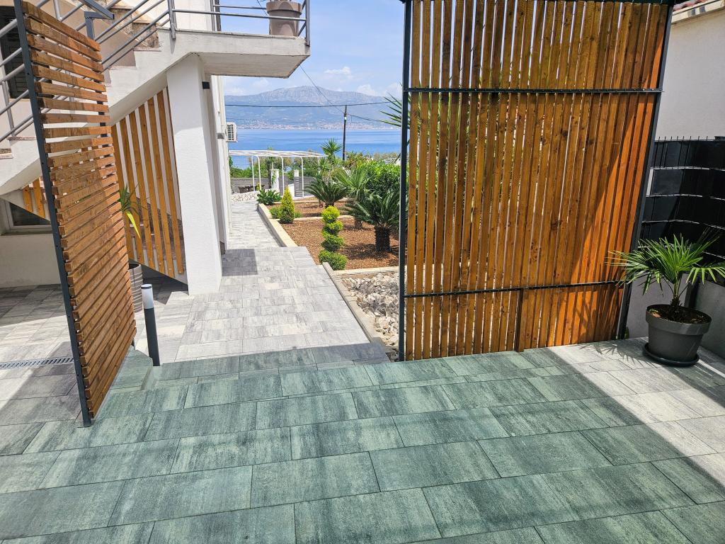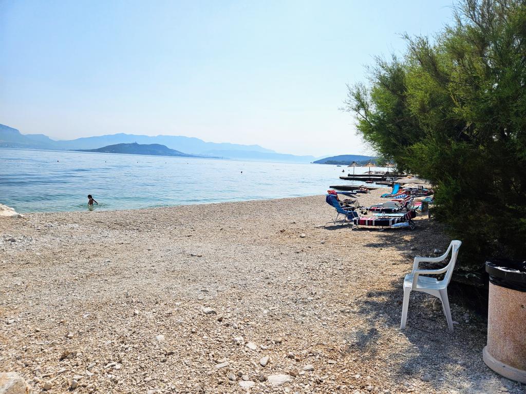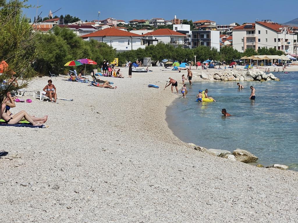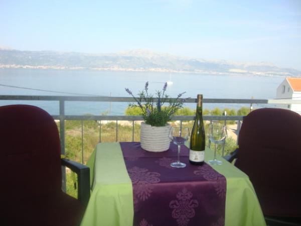 Apartmaji Villa Palma v Slatinah so od morja oddaljeni 15 m.Vsi apartmaji imajo pogled na morje. Apartmaji so udobni in opremljeni z: klimatsko napravo, sat/tv, wi-fi. Nahajajo se na površini 1000 m2.Pred apartmajem je lepo urejen vrt z žarom kjer lahko uživate v druženju s prijatelji ob sredozemskih rastlinah.Nahajajo se na idealni poziciji 300m od centra in 15 m od morja, tako da lahko preživite v miru, uživate v morju in soncu, hkrati pa, če želite bolj aktiven oddih, se v centru mesta nahajajo beach bari, caffe bari , restavracije in športna igrišča.Gostom je na voljo parkirišče in garaža, kjer lahko pustite svoje stvari za na plažo.Tudi pred apartmajem je tudi vrt v velikosti 150 m2, ki je primeren za otroško igro, medtem ko vi opazujete otroke v vrtu. vrt s terase. Prijazni gostitelji vam bodo z veseljem pomagali pri organizaciji vaših izletov, fish-piknika, najema čolna, kolesa, skuterja ... kot tudi vse med drugim! Slatine so povezane z ladijsko linijo s Splitom in Trogir večkrat na dan!