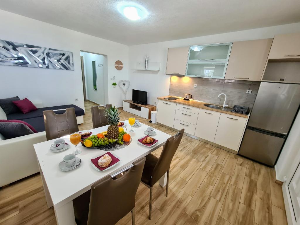 Gostom nudimo domače žganje in oljčno olje po ugodnih cenah! Organiziramo izlete v nacionalna parka Plitvička jezera in Slapova Krka ter druge znamenitosti po dogovoru (Međugorje, Šibenik...) Organiziramo ribje piknik izlete na otoke Šolta, Brač, Drvenik Veli in Mali. Organiziramo najem čolna (velikega ali malega), skuterja... Posebno darilo ob odhodu!