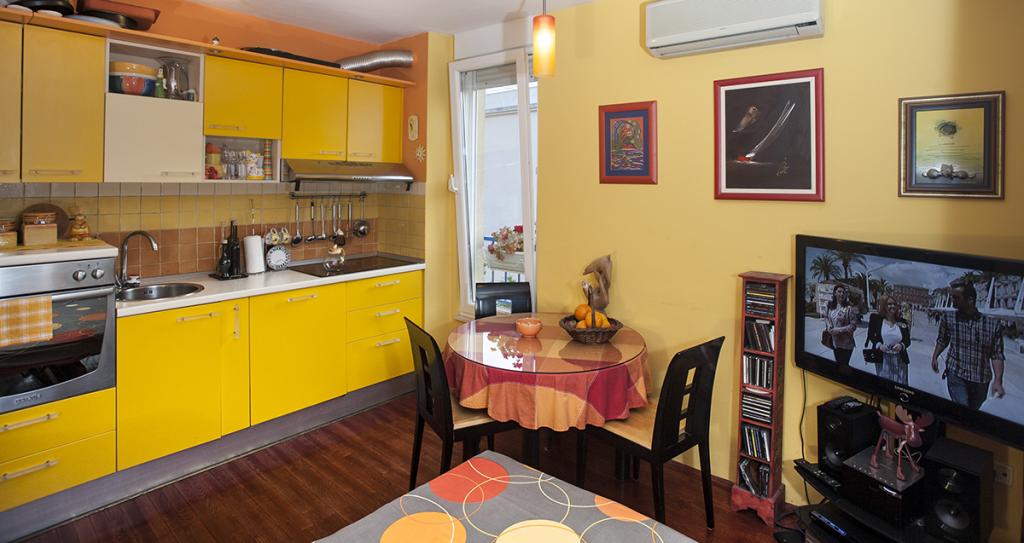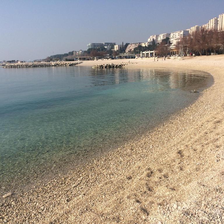 Apartma SUNNY YELOW z balkonom in parkirnim mestom se nahaja na plaži ŽNJAN, 100 m oddaljen od najboljše prodnate plaže v Splitu in dolge promenade ob morju. Plaža ŽNJAN je kilometer dolga plaža, ki ponuja številne bare in restavracije. Le 20 m od apartmaja se nahaja bistro - kavarna, 50 m stran je trgovina, 3,6 km je Dioklecijanova palača. Apartma ima brezplačen WI-FI, klimatsko napravo, TV in radio s CD-jem. Na voljo je tudi popolnoma opremljena kuhinja s pomivalnim strojem in pečico. Kopalnica je opremljena s pralnim strojem, brezplačnim toaletnim priborom in brisačami. Iz kopalnice lahko uživate v čudovitem pogledu na vrt. Pred apartmajem se nahaja parkirno mesto, ki pripada stanovanju, ter zunanji žar s kamnito mizo in klopmi, kjer lahko pripravljate in uživate jedi z žara. Če želite obiskati okolico, je tam katedrala sv. Domnius - 34 km), Mestni muzej Split (3,4 km), letališče Split je 15 km od apartmajev.