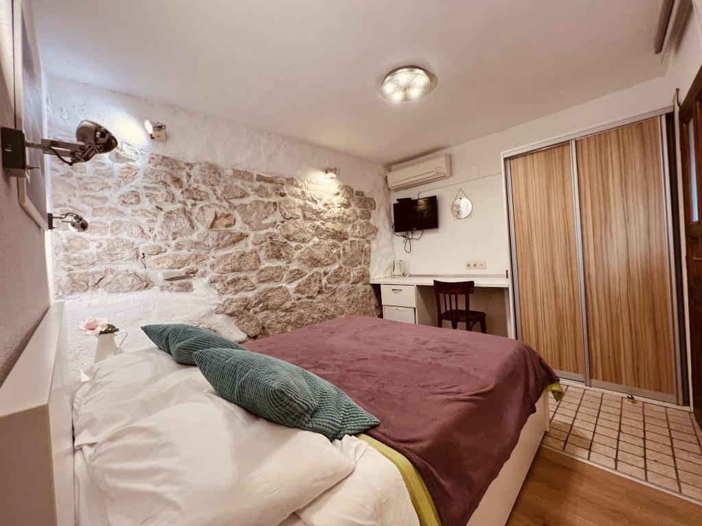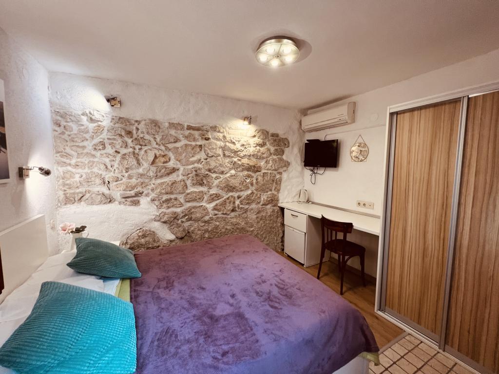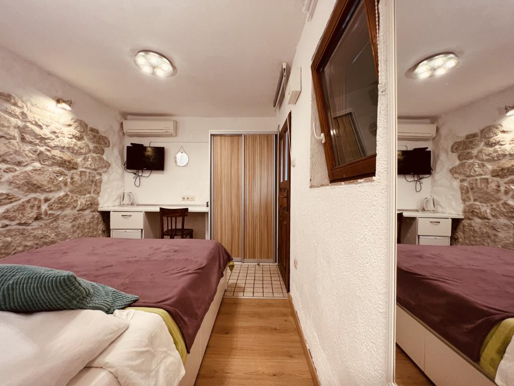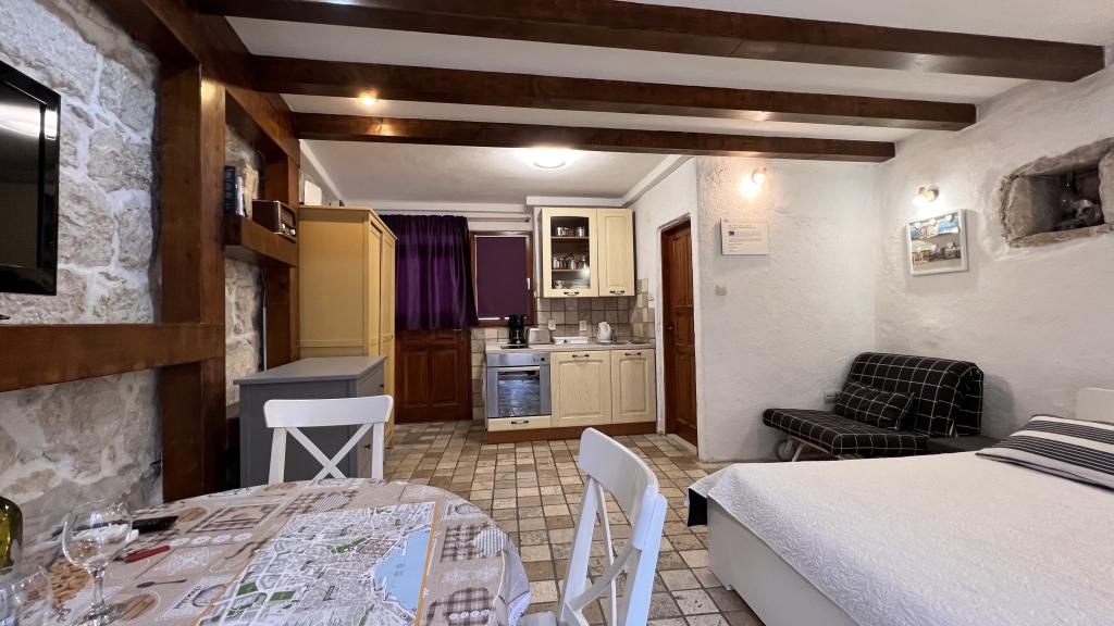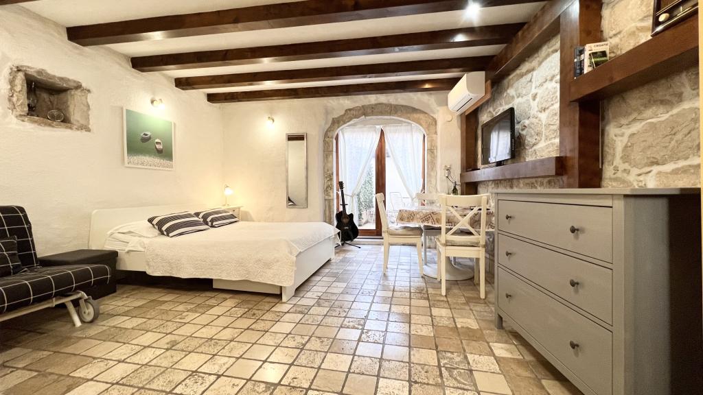 GUARDIAN je izbral STUDIO: Eden izmed 10 najboljših evropskih hotelov in še ena namestitev, v kateri počitnice resnično uživajo: Studio apartmaji so v stari hiši, nedavno urejeni v starem delu mesta, v mirni ulici. Idealno za vaš dopust v centru mesta ter užitek in čisto dalmatinsko vzdušje. Studio apartmaji imajo zakonsko posteljo, dodatno ležišče, kuhinjo, tuš, TV, klimatsko napravo, radio CD, sušilnik za lase, brezplačen internet, brezplačno javno parkirišče ... Zaradi svoje priročne lokacije med vašim bivanjem ne boste potrebovali vašega avtomobila v Splitu. Vse za sproščujoče bivanje v centru mesta, na obali, na hribu Marjan, številne plaže, trgovine, trajektna pristanišča, avtobusna postaja, vse je dosegljivo peš, v nežnem sredozemskem zraku. Središče mesta je oddaljeno 100 m. Na dvorišču lahko uporabljate kamin.