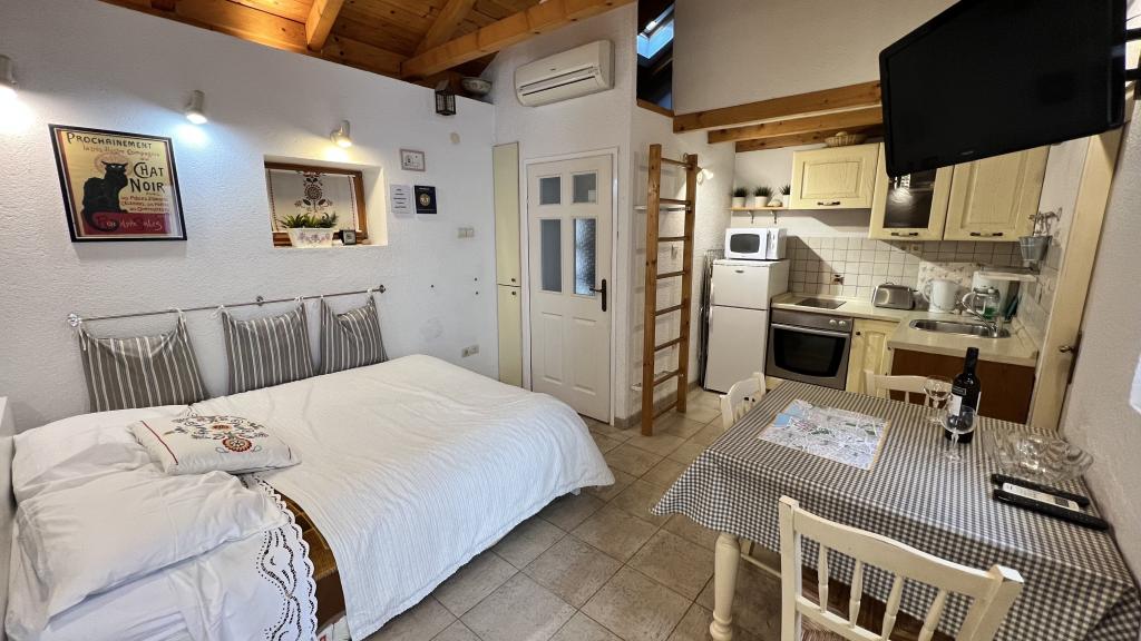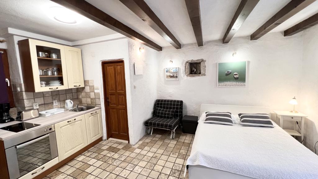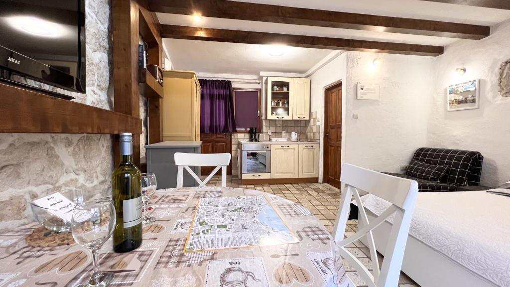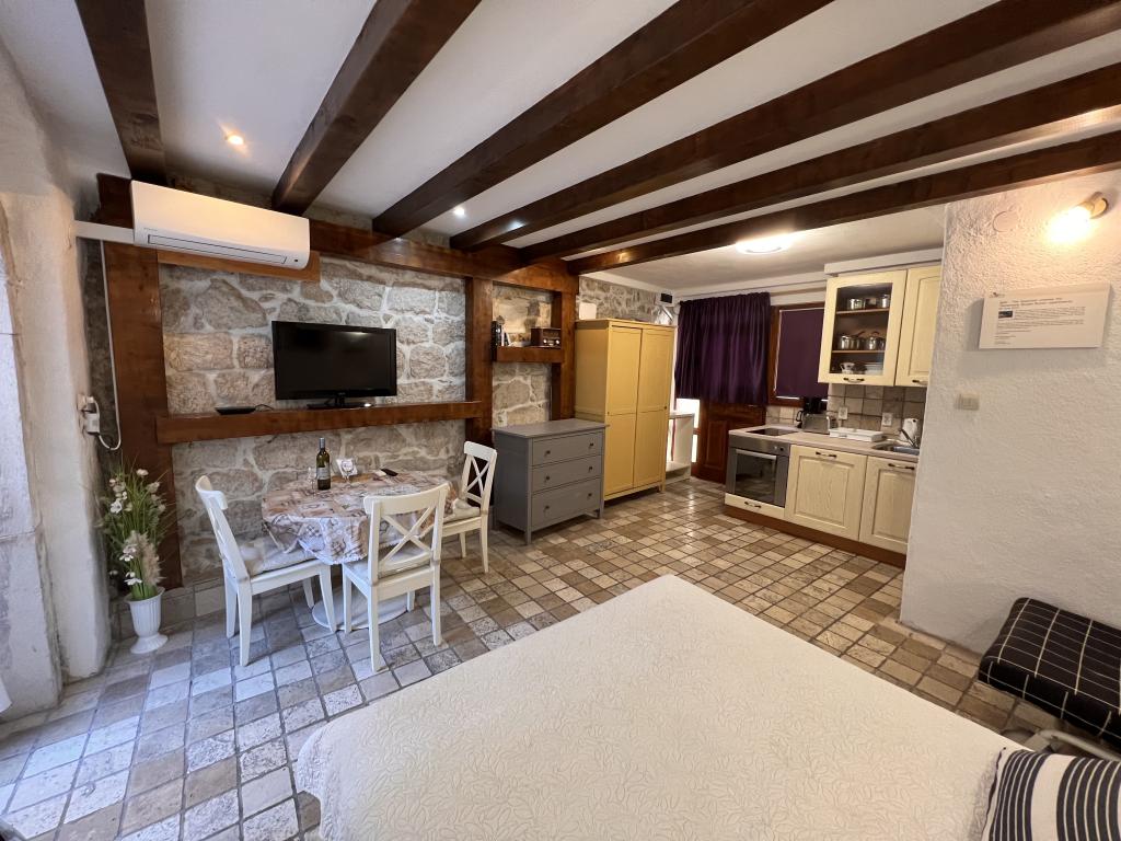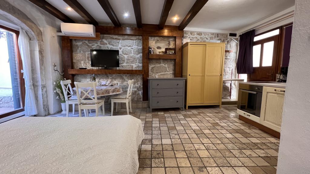 GUARDIAN je izbral STUDIO: Eden izmed 10 najboljših evropskih hotelov in še ena namestitev, v kateri počitnice resnično uživajo: Studio apartmaji so v stari hiši, nedavno urejeni v starem delu mesta, v mirni ulici. Idealno za vaš dopust v centru mesta ter užitek in čisto dalmatinsko vzdušje. Studio apartmaji imajo zakonsko posteljo, dodatno ležišče, kuhinjo, tuš, TV, klimatsko napravo, radio CD, sušilnik za lase, brezplačen internet, brezplačno javno parkirišče ... Zaradi svoje priročne lokacije med vašim bivanjem ne boste potrebovali vašega avtomobila v Splitu. Vse za sproščujoče bivanje v centru mesta, na obali, na hribu Marjan, številne plaže, trgovine, trajektna pristanišča, avtobusna postaja, vse je dosegljivo peš, v nežnem sredozemskem zraku. Središče mesta je oddaljeno 100 m. Na dvorišču lahko uporabljate kamin.