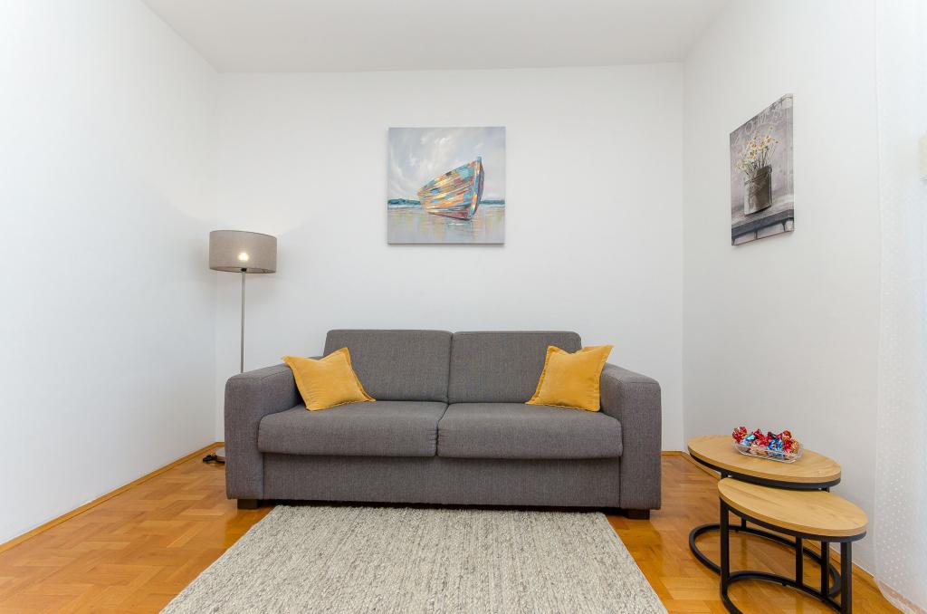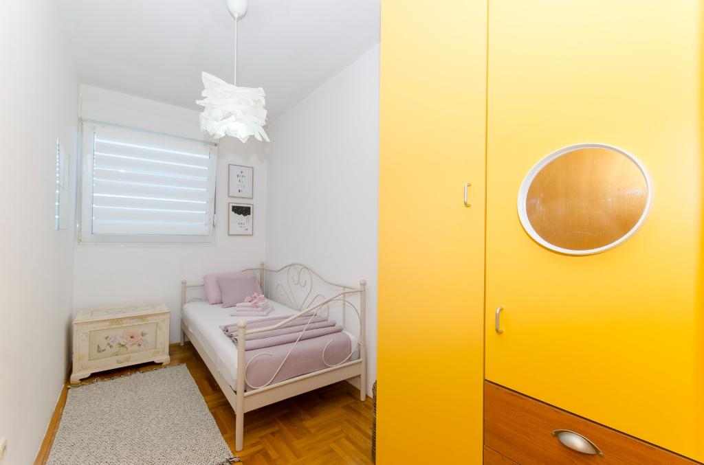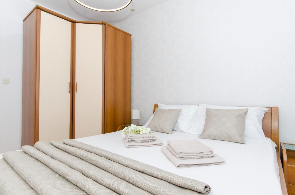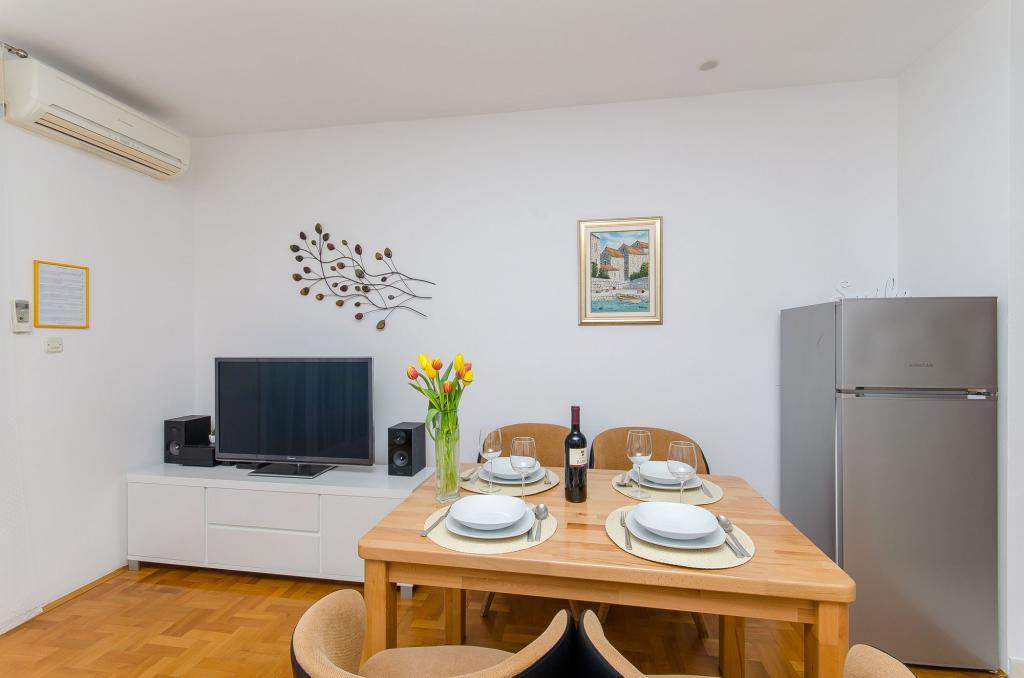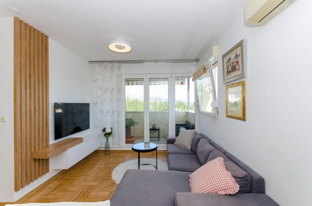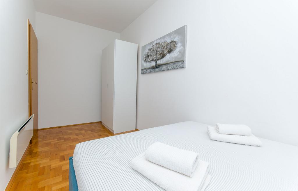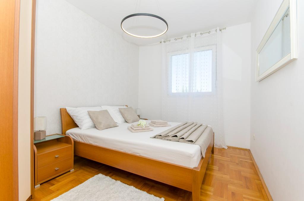 Popolnoma opremljeni in moderni apartmaji se nahajajo v novih stanovanjskih stavbah v mirnem delu Splita. Apartmaja 4+1 in 5+0 se nahajata v soseski Pazdigrad. Naslov je Put Duilova 4a. Apartma 2+2 se nahaja na vhodu v Split, v delu mesta, imenovanem Sirobuja. Naslov je Stobrečka 26. Apartma (4+1) je sestavljen iz dveh spalnic, kopalnice z WC-jem, kuhinje z jedilnico, dnevne sobe in terase s čudovitim razgledom. V eni spalnici je zakonska postelja 160 × 200 cm, v drugi spalnici pa zakonska postelja 140 × 200 cm. V dnevni sobi je raztegljiv kavč. Apartma (5+0) je sestavljen iz treh spalnic, kopalnice z WC-jem, kuhinje z jedilnico, dnevne sobe in prostorne terase s pogledom na morje. V eni spalnici je zakonska postelja 160×200, v drugi zakonska postelja 140×200 in v tretji sobi enojna postelja 90×200 za eno osebo. V kleti stavbe so garaže, ki so z apartmaji povezane z dvigalom. Apartmaji imajo TV, klimatsko napravo in brezplačen internet. Dobrodošli.