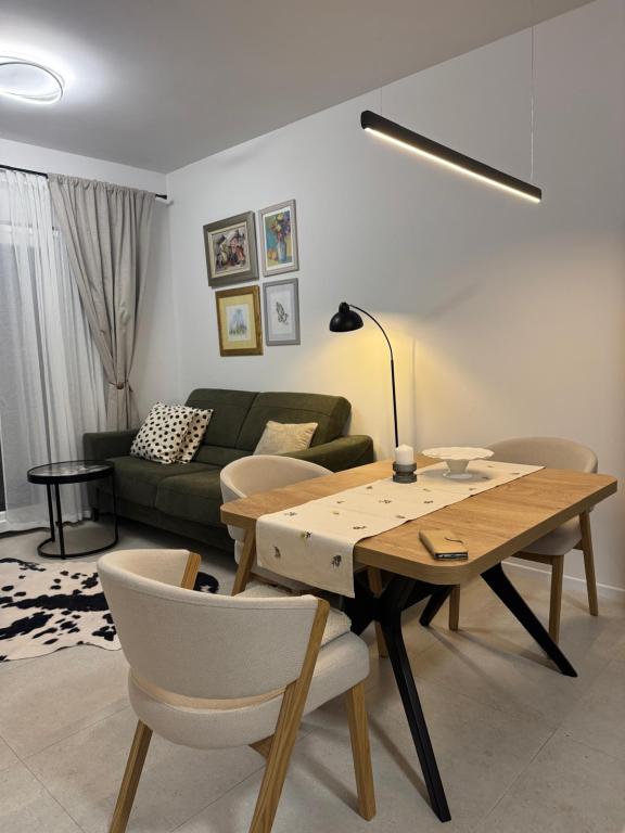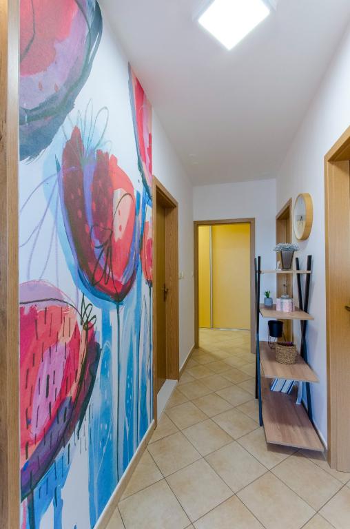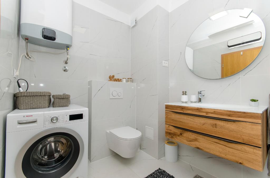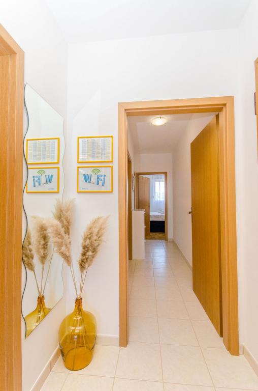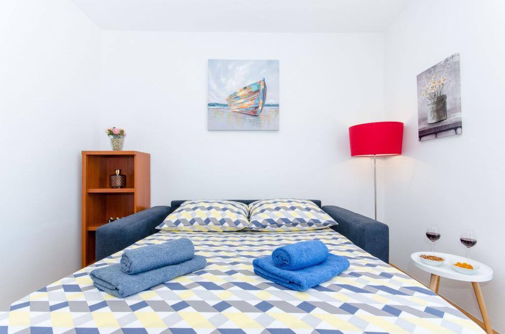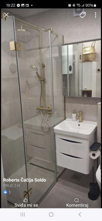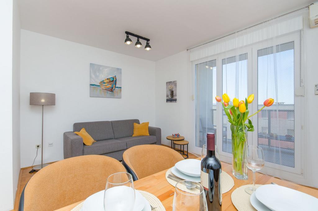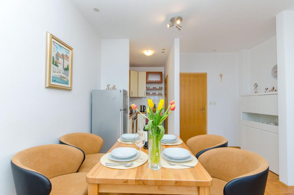 Popolnoma opremljeni in moderni apartmaji se nahajajo v novih stanovanjskih stavbah v mirnem delu Splita. Apartmaja 4+1 in 5+0 se nahajata v soseski Pazdigrad. Naslov je Put Duilova 4a. Apartma 2+2 se nahaja na vhodu v Split, v delu mesta, imenovanem Sirobuja. Naslov je Stobrečka 26. Apartma (4+1) je sestavljen iz dveh spalnic, kopalnice z WC-jem, kuhinje z jedilnico, dnevne sobe in terase s čudovitim razgledom. V eni spalnici je zakonska postelja 160 × 200 cm, v drugi spalnici pa zakonska postelja 140 × 200 cm. V dnevni sobi je raztegljiv kavč. Apartma (5+0) je sestavljen iz treh spalnic, kopalnice z WC-jem, kuhinje z jedilnico, dnevne sobe in prostorne terase s pogledom na morje. V eni spalnici je zakonska postelja 160×200, v drugi zakonska postelja 140×200 in v tretji sobi enojna postelja 90×200 za eno osebo. V kleti stavbe so garaže, ki so z apartmaji povezane z dvigalom. Apartmaji imajo TV, klimatsko napravo in brezplačen internet. Dobrodošli.