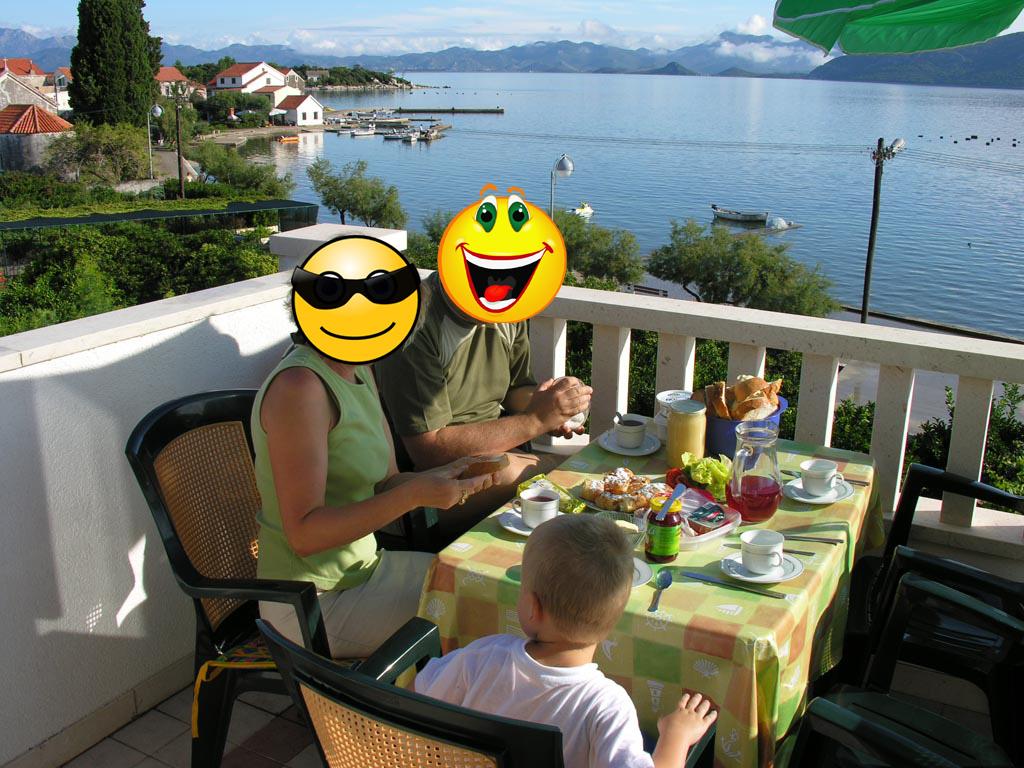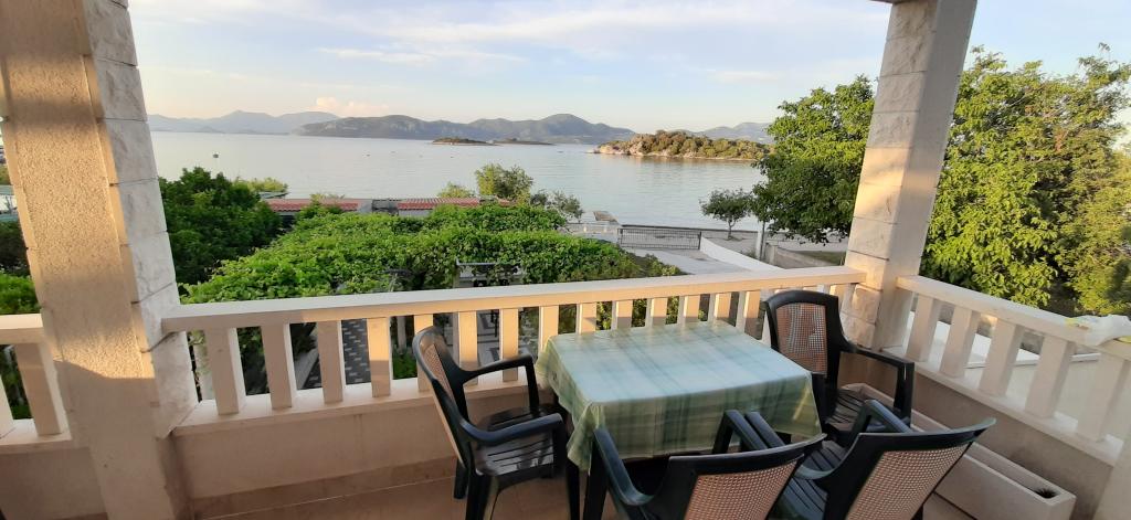 Prostorni apartmaji v Sreserju, na polotoku Pelješac, veliki 50 kvadratnih metrov. Nahajajo se tik ob morju in plaži, primerni za majhne otroke. Vsak apartma ima dve spalnici, kopalnico in veliko kuhinjo. Vsak apartma ima tudi teraso s polnim pogledom na morje in balkon na zadnji strani hiše. Kuhinja je opremljena z vso potrebno posodo in jedilnim priborom. Ima 60 litrski hladilnik z zamrzovalnikom, električni štedilnik in pečico. Apartmaji so klimatizirani. Brezplačen brezžični internet je na voljo v celotni hiši in na vrtu. Pred hišo je žar s pogledom skrito teraso za žar z mizami za sedenje. Na dvorišču je tudi zunanji tuš za hitro osvežitev. Dvorišče je ločeno od ceste z dvema garažama. Lokalna restavracija in trgovina sta le nekaj minut hoje stran. Pri lokalnih ribičih je možno kupiti sveže ribe in školjke. V trgovini lahko kupite gojene ribe, školjke in ostrige. Zdravnik, prva pomoč, pošta in bankomat so oddaljeni dva kilometra.