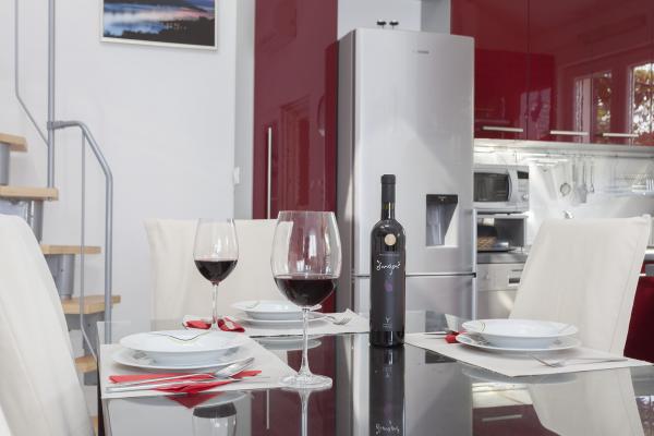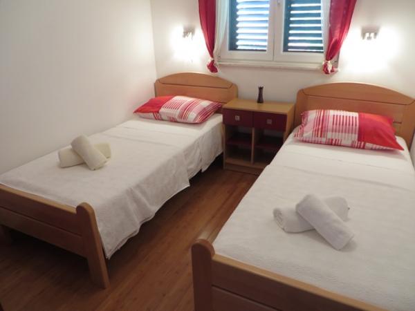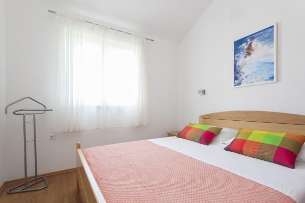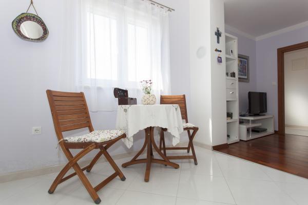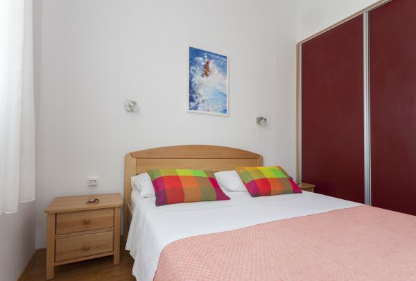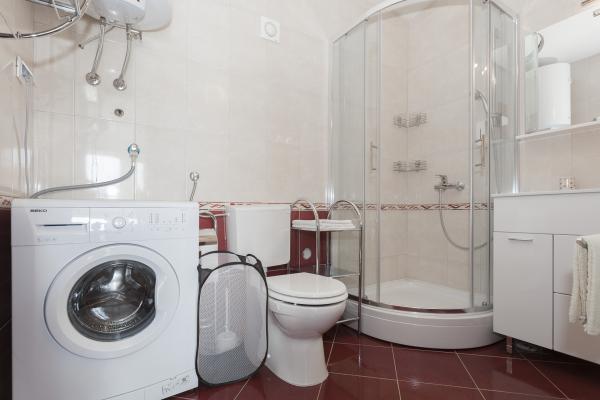 Stanovanje je bilo čisto in kot je vidno na slikah vnaprej. Klimatska naprava je vključena. Posebej omembe vredne so bile številne značilnosti apartmaja na krožnikih, kozarcih, jedilnem priboru, itd. Pomivalni stroj in pralni stroj omogočata bivanje. Pozdravljen je bil pivo, ki ga je pripravilo vino gostitelja, pripravljeno pa je bilo tudi žganje. Na voljo sta bila dva kolesa, 3,5 km dolga pot do promenade do Vodic je krajša. Ponudil sem mu celo skuter za uporabo. Bližnja plaža je bila kot nalašč za otroke, saj je po približno metru v vodi imela pesek. Lastnik je bil zelo prijazen. Njegova iskrenost in uslužnost sta zaokrožila njegovo pozornost. To je bil zelo lep dopust, ki bi ga radi ponovili v teh prostorih. , ,