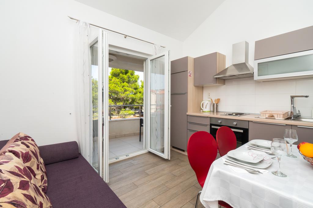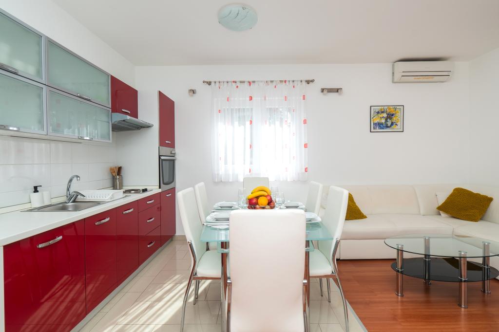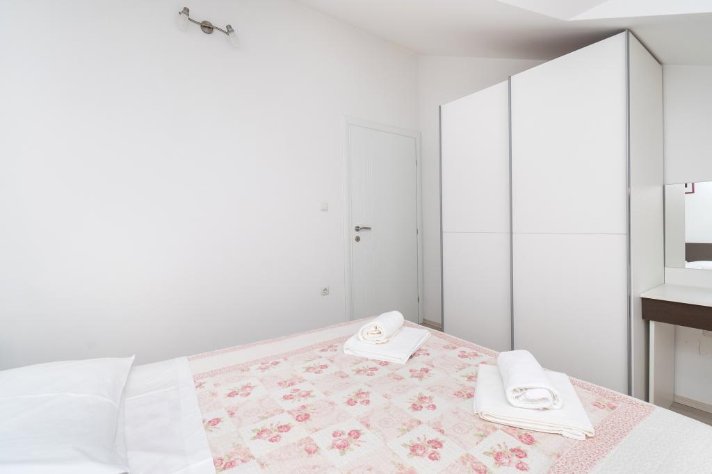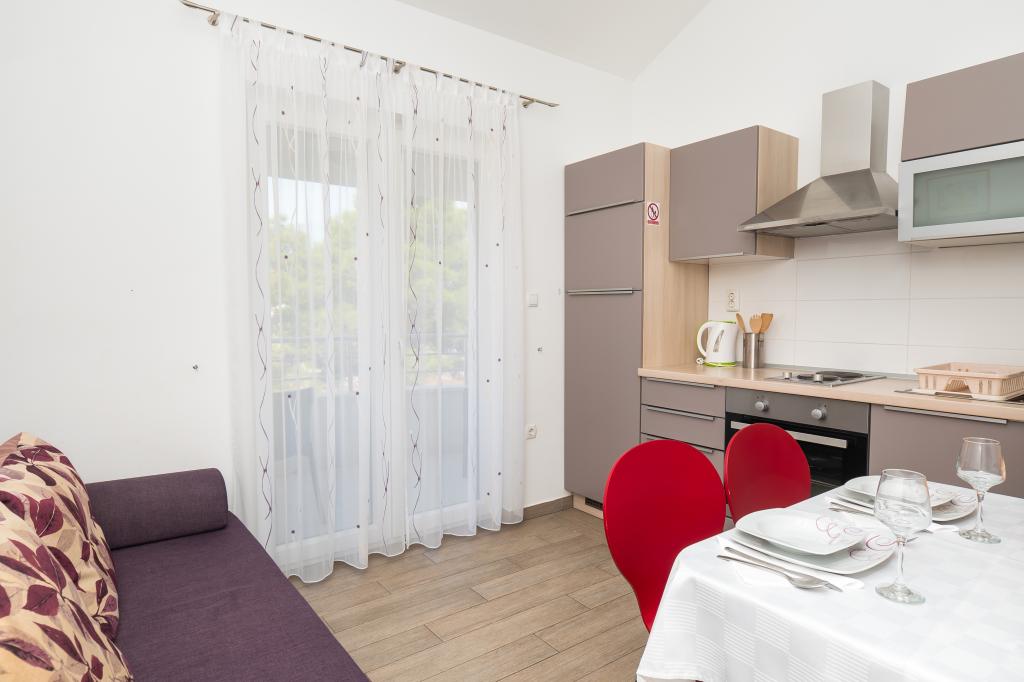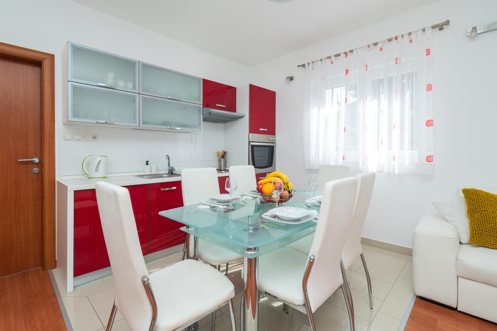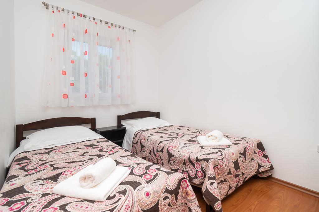 Hiša se nahaja na mirni lokaciji. Host zelo prisrčni, koristno. Apartma je zelo čist, urejen in moderno opremljen - v skladu z opisi in fotografijami. Oprema vključuje vse potrebno za prijetno bivanje, stanovanje ima velik balkon s čudovitim pogledom na morje in otok. Najbližja plaža je prodnata, primerna za majhne otroke. Zahvaljujemo gostitelji za topel sprejem, pomoč (in okusno zelenjavo iz lastnikov vrt).