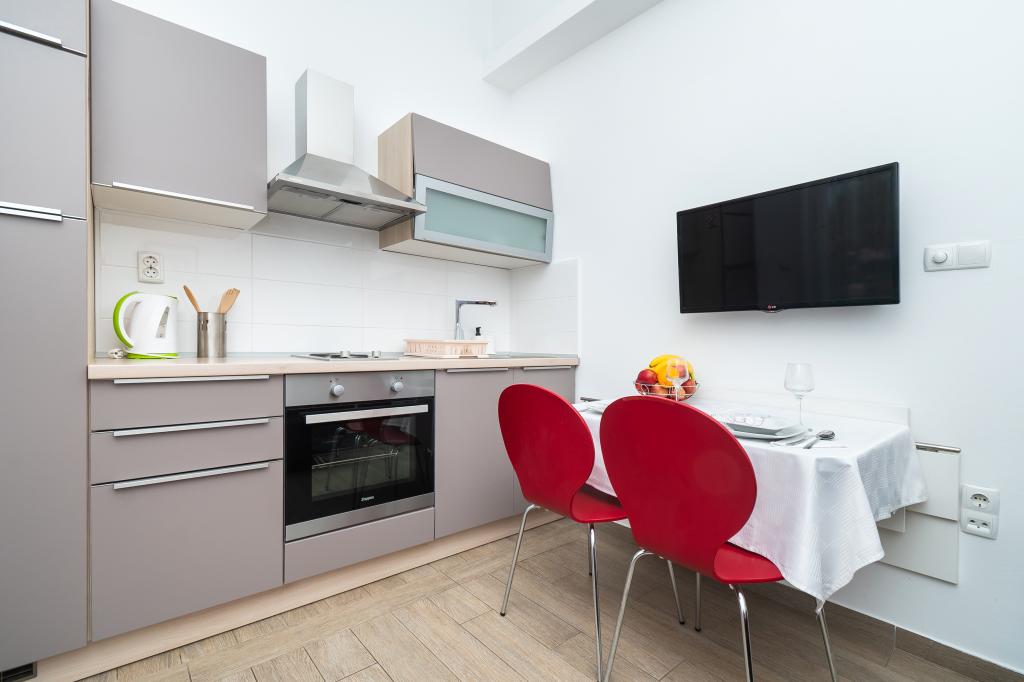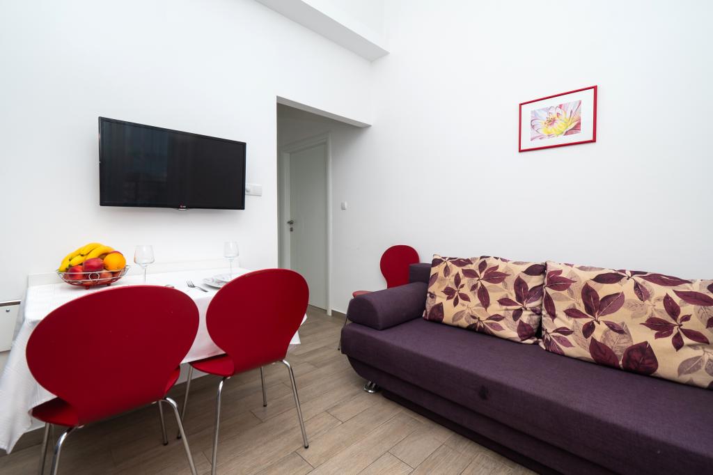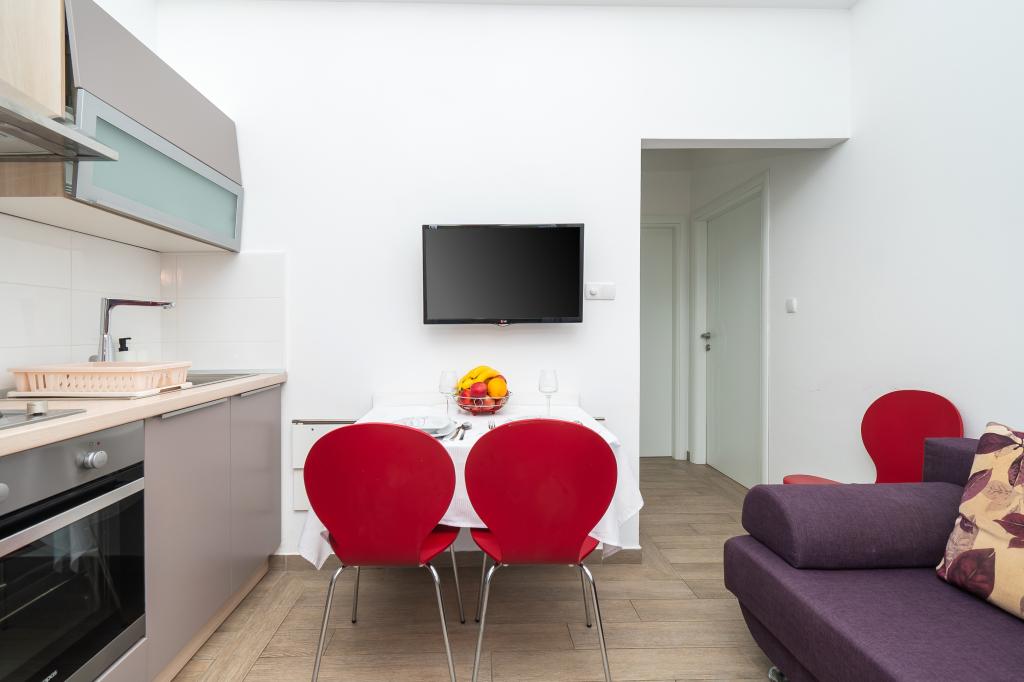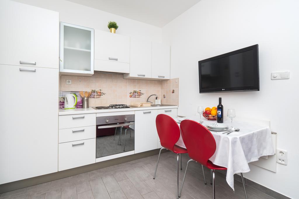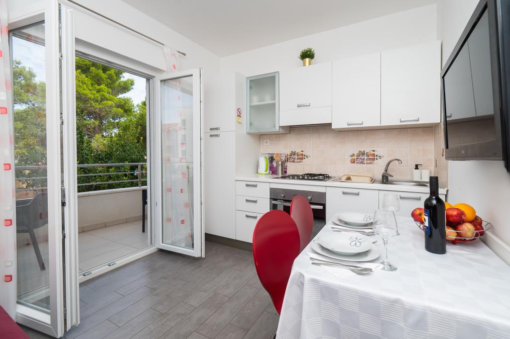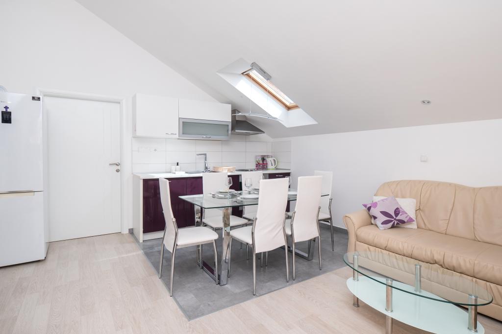 Hiša se nahaja na mirni lokaciji. Host zelo prisrčni, koristno. Apartma je zelo čist, urejen in moderno opremljen - v skladu z opisi in fotografijami. Oprema vključuje vse potrebno za prijetno bivanje, stanovanje ima velik balkon s čudovitim pogledom na morje in otok. Najbližja plaža je prodnata, primerna za majhne otroke. Zahvaljujemo gostitelji za topel sprejem, pomoč (in okusno zelenjavo iz lastnikov vrt).