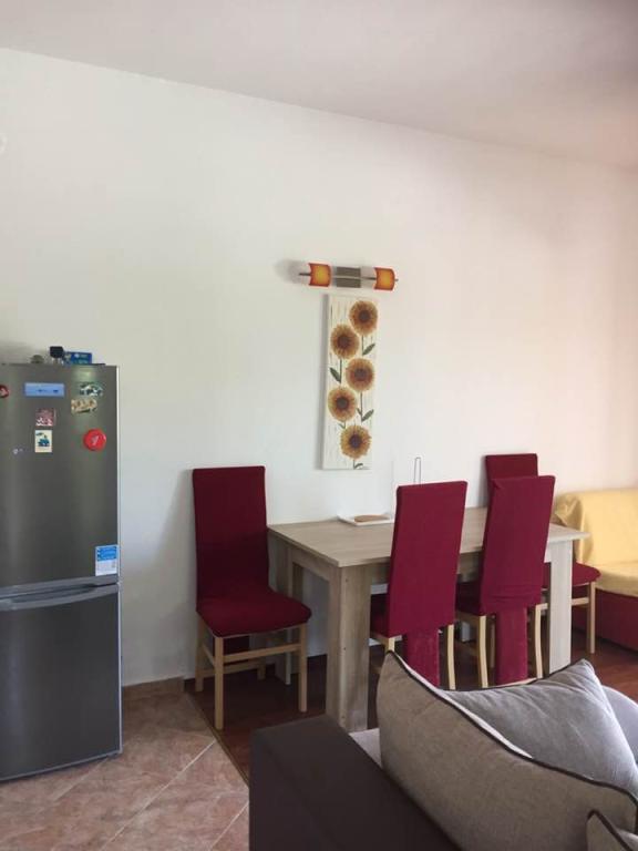 Popolnoma opremljeni apartmaji v mirnem delu Srime, 60 metrov od peščene plaže. V bližini je otroško igrišče, sprehajališče, restavracija, trgovina. Apartmaji so popolnoma opremljeni. Pred apartmajem je terasa z brezplačnim parkiranjem. Idealen kraj za družinske počitnice z otroki, Poleg hiše s 4 apartmaji imamo tudi počitniški dom za štiri osebe. Nahajajo se eden za drugim. Domače živali so dovoljene po predhodnem dogovoru Imamo možnost vstopa v otroško posteljico v spalnici.