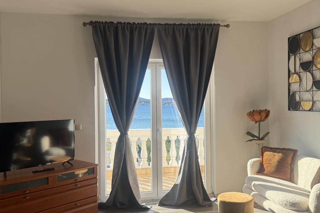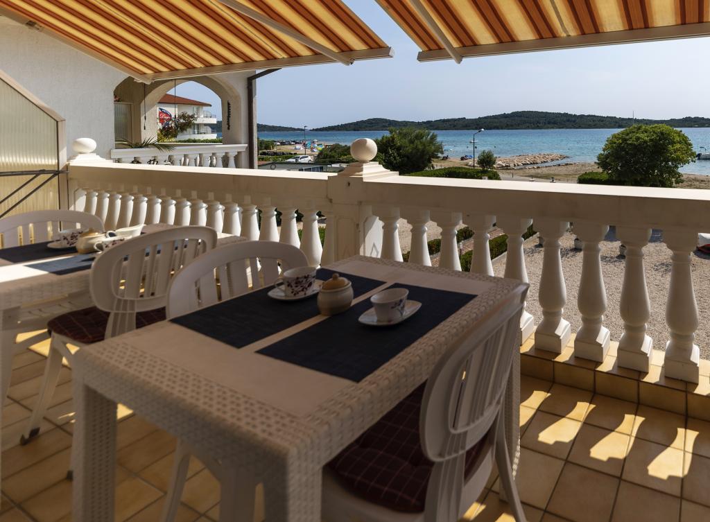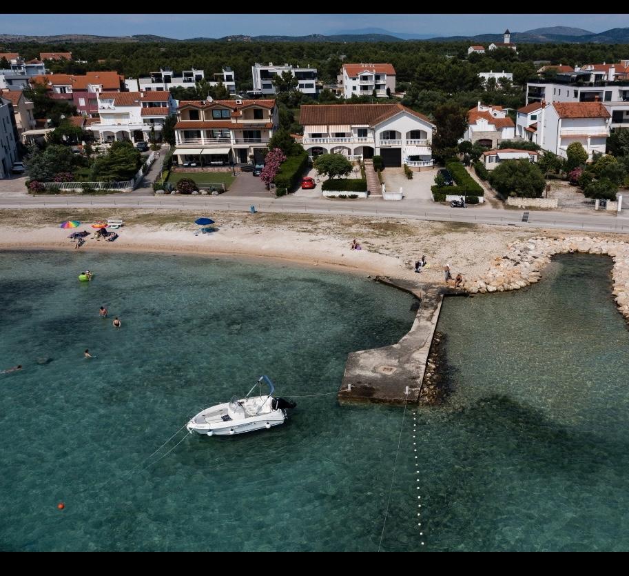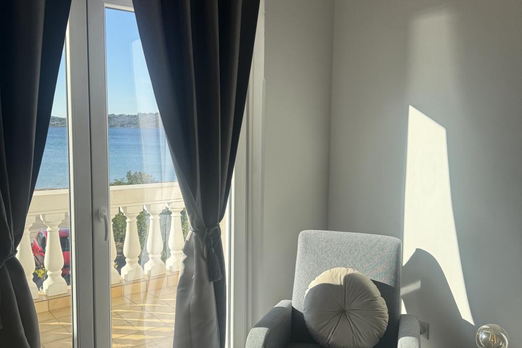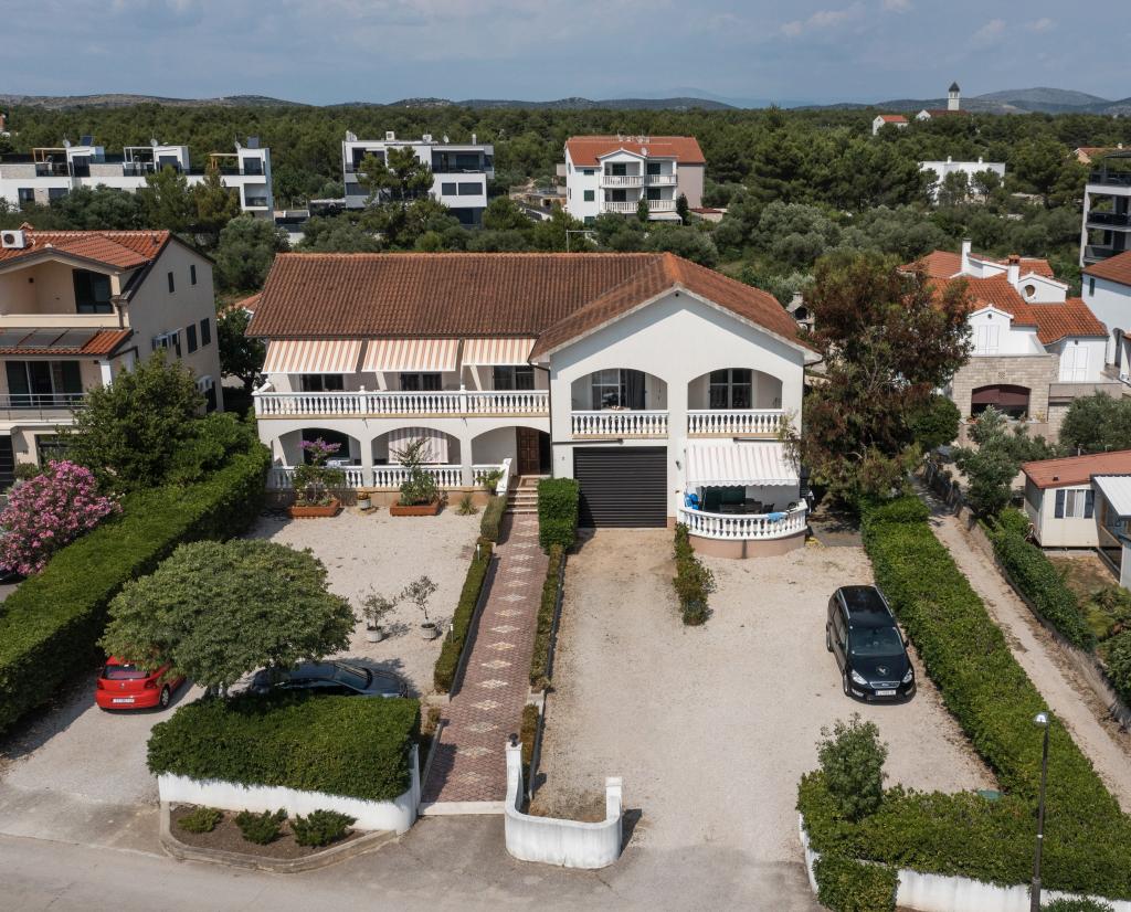 Neposredno ob morju, v Srimi, v prvem nadstropju družinske hiše, se oddajajo moderni apartmaji. Kvaliteten inventar, klimatizacija, oprema nasploh, bo zadovoljila goste, ki želijo več. Z združevanjem apartmajev lahko udobne dvo- in triposteljne sobe sprejmejo skupino turistov, medtem ko bodo gostitelji najeli le sobo z balkonom in pripadajočim straniščem. K občutku varnosti in sproščenosti bo prispeval tudi pozen pogled na morje.