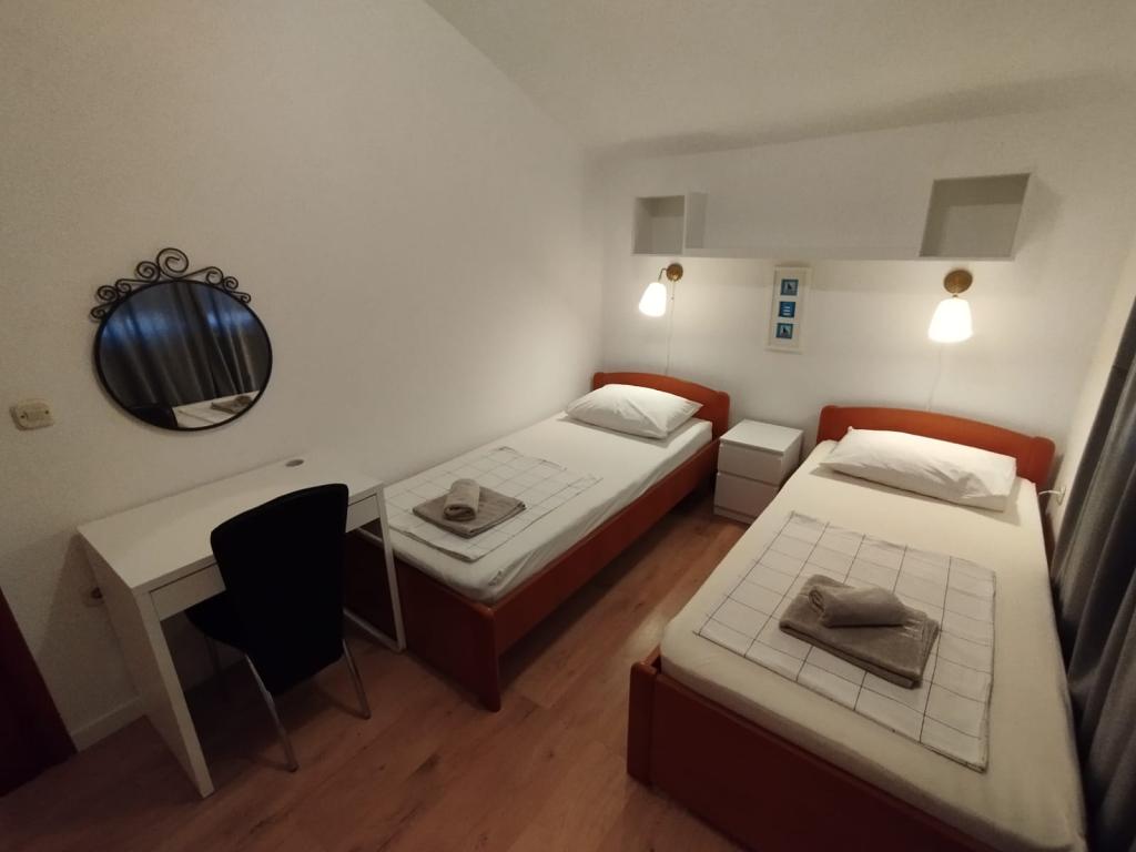 Apartmaji MALI DVORI se nahajajo v slikoviti turistični vasici Srima. Srima je prijeten in miren kraj, idealen za družinski turizem. Hiša ima 3 apartmaje. Moderno in funkcionalno opremljeni apartmaji vsebujejo vse elemente za brezskrbno in prijetno bivanje. Vsak apartma ima ločen vhod in ločeno pokrito teraso s pogledom na vrt in delno na morje. Peščena plaža je oddaljena le 80 m od hiše in je idealna za majhne otroke. Če iščete zabavo in dobro razvedrilo, so Vodice, znano turistično središče, oddaljene le 3 km.