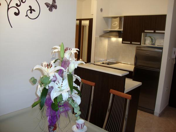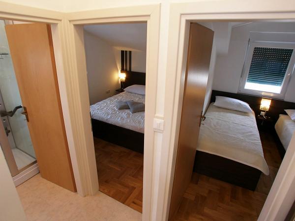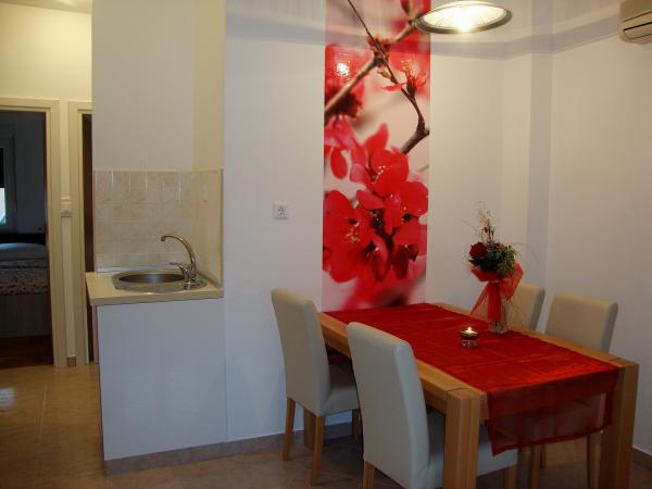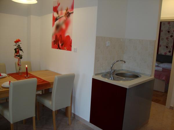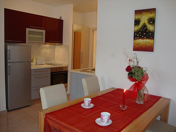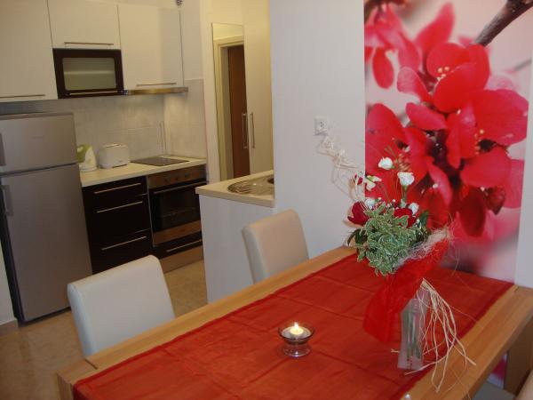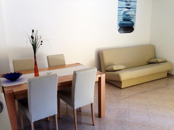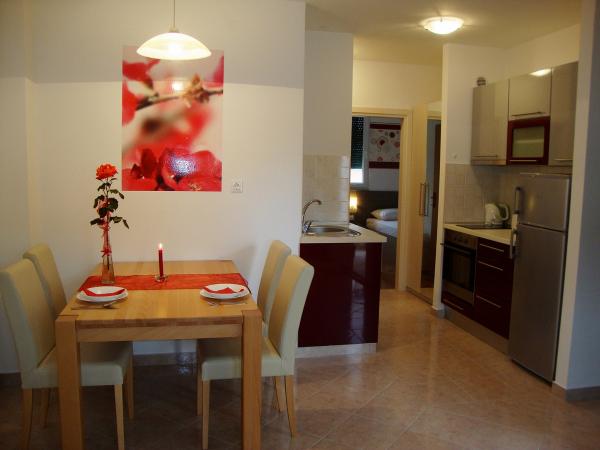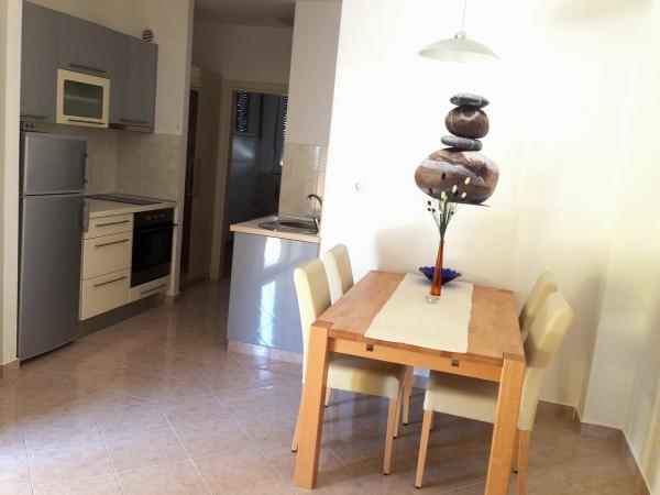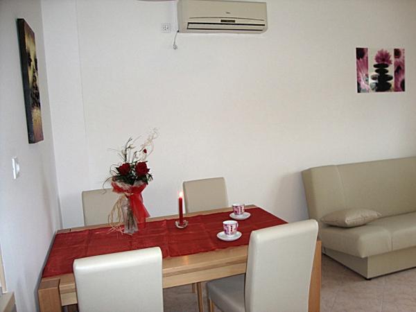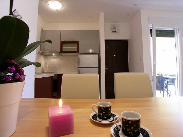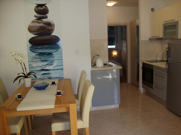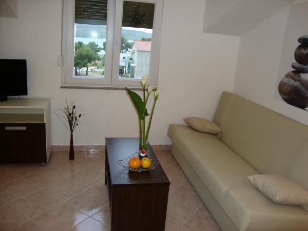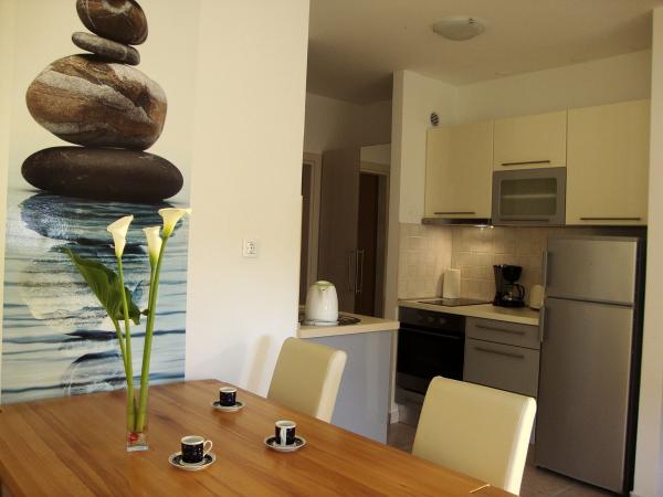 Popolnoma opremljeni in moderni apartmaji v mirnem predelu Srima (Vodice), ki se nahaja 100 m od morja. Ti so opremljeni s klimatsko napravo, brezplačen brezžični dostop do interneta (Wi-Fi) in satelita - TV. Kopalnica vključuje masažno tuš kabino in sušilcem za lase. Gostje imajo dostop do vrta in prostih zmogljivosti žarom. Vsi apartmaji imajo teraso s pogledom na morje. Objekt je na voljo brezplačno parkirišče. Objekt se nahaja le nekaj minut hoje do centra.