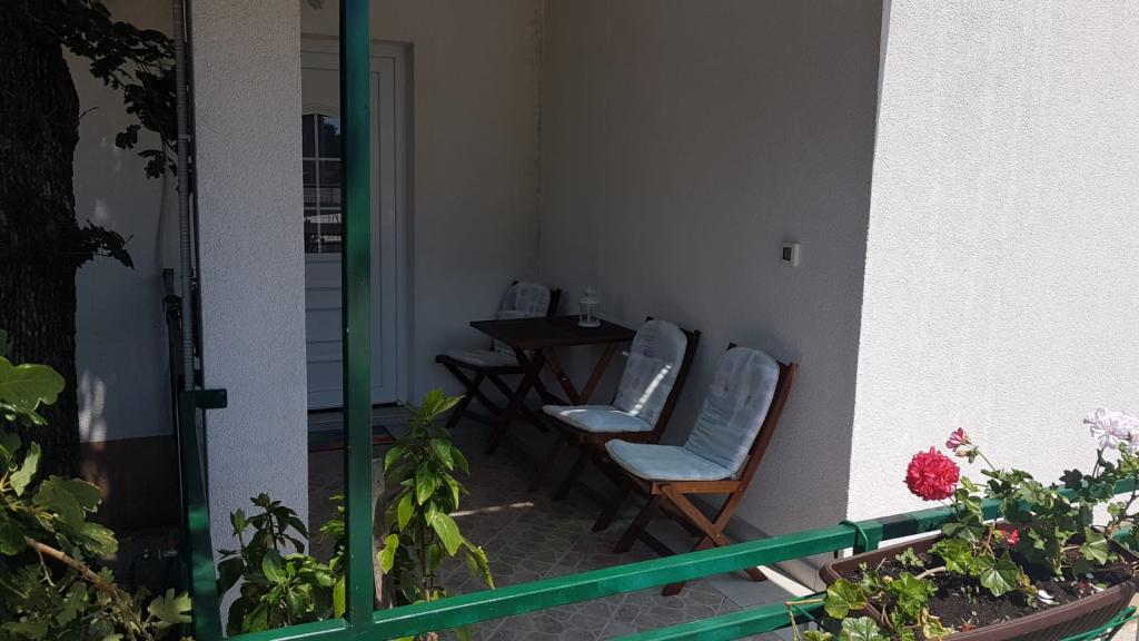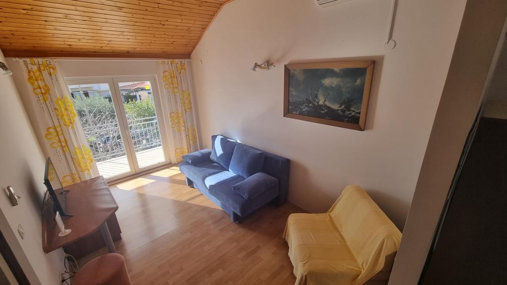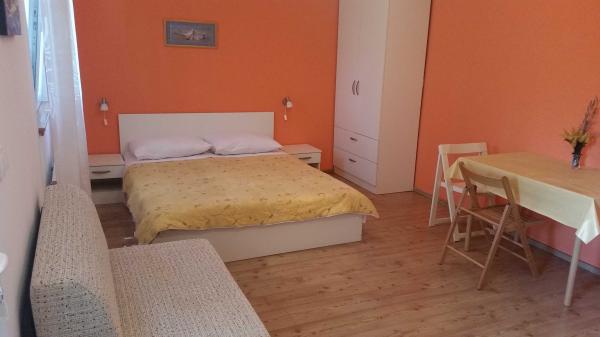 Apartmaji se nahajajo v predmestju Vodic - Srima. Ponujamo 3 apartmaje. V prvem nadstropju naše hiše se nahajajo apartmaja 2+2, v pritličju pa je studio apartma 2+1. Vsi apartmaji so klimatizirani. Vsak apartma ima parkirno mesto v senci. Na vrtu imate vrt z žarom in otroškim igriščem. Hiša se nahaja v stranski ulici, zato ponuja mir in zasebnost. Plaža je oddaljena 200 m, trgovina pa 150 m. Center mesta (Srime) je oddaljen 500 m, center Vodic pa približno 2 km oziroma 20 minut lahkega sprehoda.