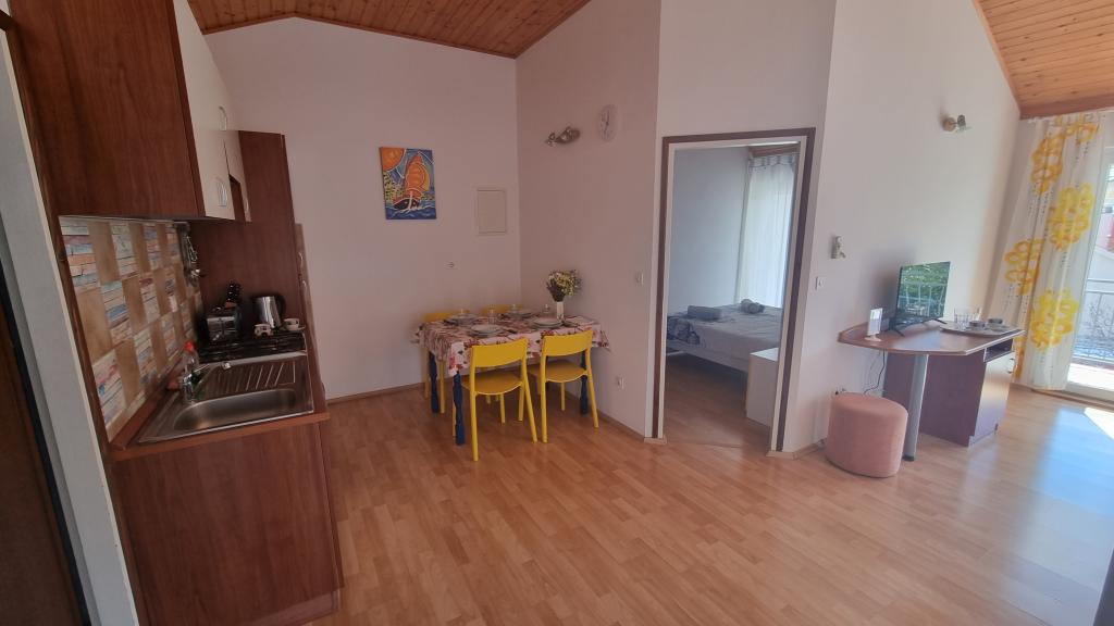 Preberite več Namestitvene enoteProsti termini za sezono 2022: App 2+2 - po 27.8. App 2+1 - 28.8. - 3.9. (8 dni) in po 15.9. Plača se akontacija v višini cca 30%. Prijava: od 12:00 na dan prihoda Odjava: do 10:00 na dan odhoda