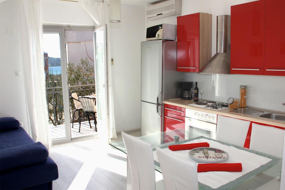 Peter Hiša Apartmaji se nahajajo v majhni vasici v bližini Vodice Vodice, Riva, v bližini peščene plaže.Pogodno za družinske odmor.Svi apartmaji imajo velike terase s pogledom na morje.