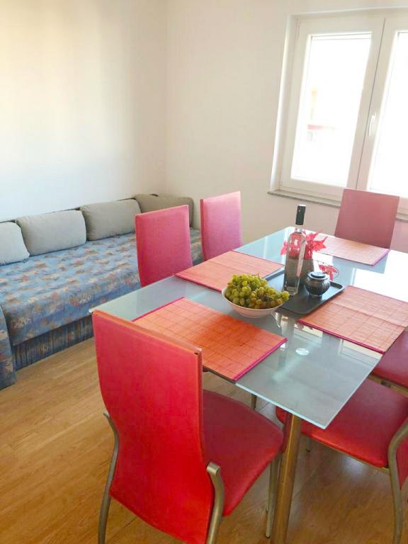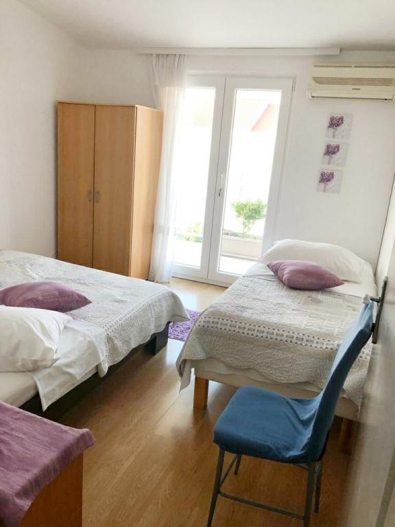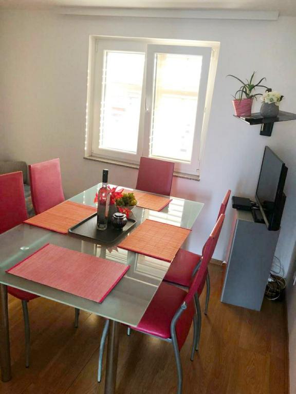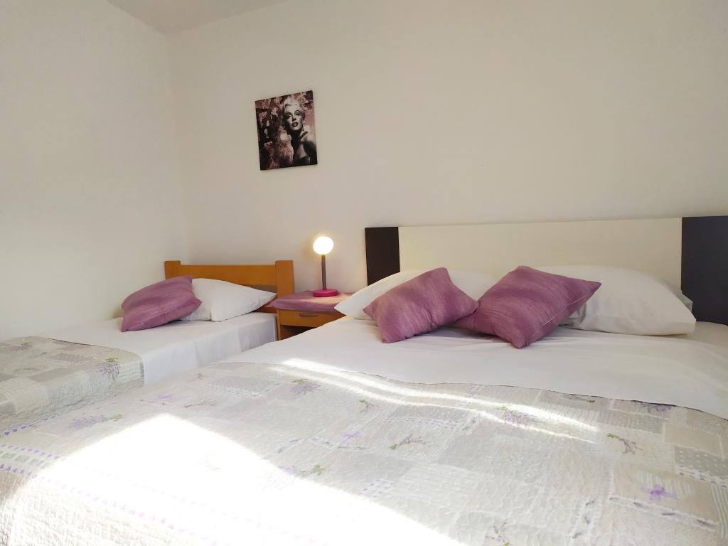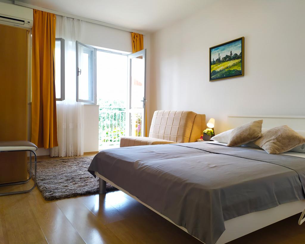 Apartmaji so moderno in sodobno opremljeni ter se nahajajo v majhnem in mirnem kraju Srima. Apartmaji imajo pogled na morje in se nahajajo 2 minuti hoje od plaže in centra mesta. Apartmaji se nahajajo v prvem in drugem nadstropju družinske hiše. Apartmaji imajo dve spalnici z dodatnimi ležišči, kuhinjo z dnevno sobo, kopalnico in balkon s pogledom na morje. Vključujejo tudi klimatsko napravo, internet, satelitsko televizijo, štedilnik, hladilnik, grelnik za vodo in posodo ter posteljnino. Zaradi svoje velikosti in udobja so apartmaji idealni za velike družine, ki si želijo miru, sence, bližine plaže in nepozabnega sončnega zahoda!