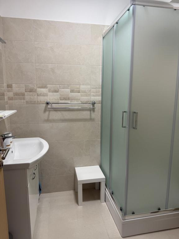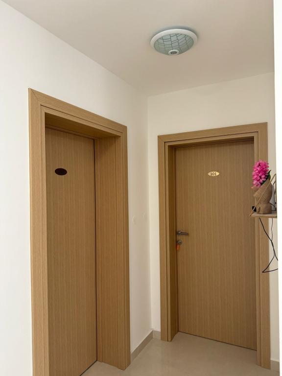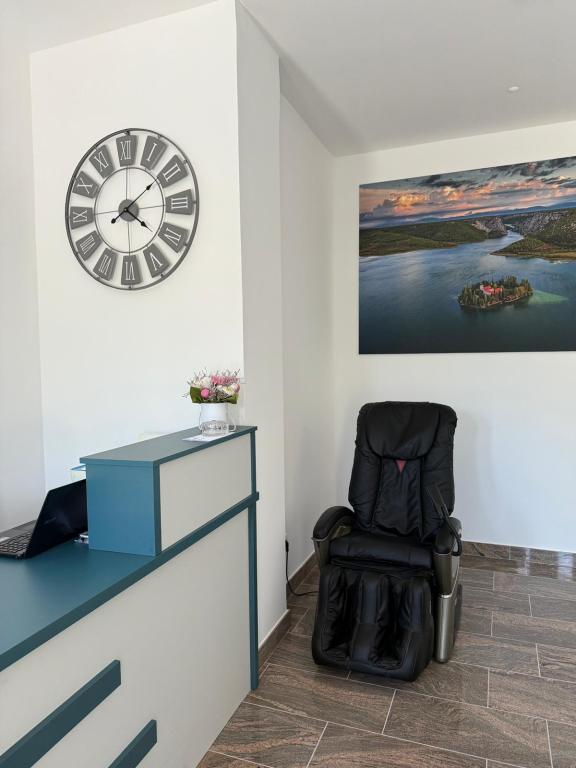 Novo obnovljen objekt, ki se nahaja v prvi vrsti ob morju, v mestu Srima, kjer je peščena in prodnata plaža, v bližini objekta se nahaja pekarna, trgovina, restavracija 200 m hoje, 1 km po promenadi do Vodic, na voljo so dvoposteljne sobe z dodatnim ležiščem, idealno za samostojne popotnike, pare in poslovneže. Ponudba vključuje studio apartma s čajno kuhinjo in apartmaje z ločeno spalnico. Namestitvene enote se nahajajo v 1. in 3. nadstropju stavbe. V objektu je dvigalo. Vsaka soba je ločena namestitvena enota.