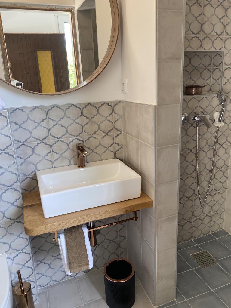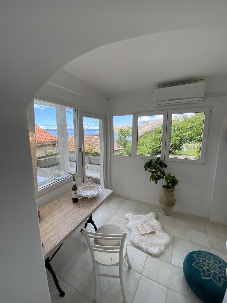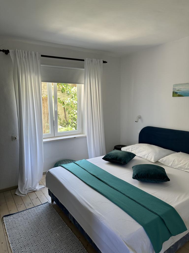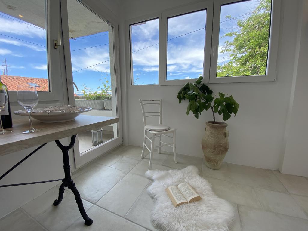 Hiša se nahaja 50 metrov od peščene in prodnate plaže. Na plaži ni gneče, morje pa je kristalno čisto. V hiši sta dva apartmaja. Stanovanje je na novo prenovljeno in v celoti opremljeno. Apartma ima dve spalnici z zakonsko posteljo, popolnoma opremljeno kuhinjo, kopalnico in balkon s pogledom na morje. Zagotovljeno je eno parkirno mesto 100m od hiše.