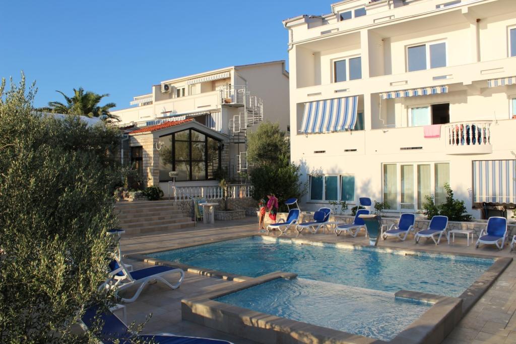 Pozdravljeni Dragi gostje! Smo Family resort v Stari Novalji na otoku Pagu. Naša namestitev se nahaja neposredno ob morju in plaži, imamo bazen, ki je idealen za otroke in družine, naše parkirišče in privez za čoln. Apartmaji so popolnoma opremljeni s čudovitimi terasami s pogledom na morje, veliki apartmaji tipa A4+2 z 2 kopalnicama in hotelske sobe na bazi nočitve z zajtrkom. Nov je tudi 230 m2 velik Penthouse. Za vse ostale informacije, možnosti in rezervacije nas lahko kontaktirate. Hvala vam !