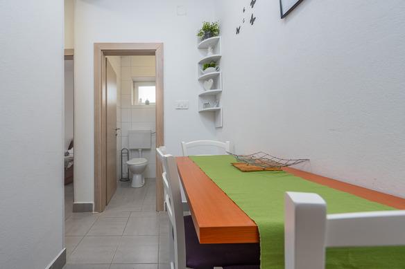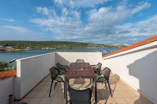 Toni Apartmaji se nahajajo v Stari Novalji na otoku Pagu. Objekt se nahaja ob plaži in ima restavracijo v pritličju. Prav tako je blizu, 5 minut hoje in velik javni plaži z vsemi vodnimi športi in bar. Pred hišo je veliko parkirišče in vrt z žarom in ponujajo možnost najema koles. Novalja je majhno mesto, vendar če iščete zabavo le 5 kilometrov stran se nahaja znana plaža Zrće z velikimi nočnih klubih, in 2,5 kilometrov Novalja.