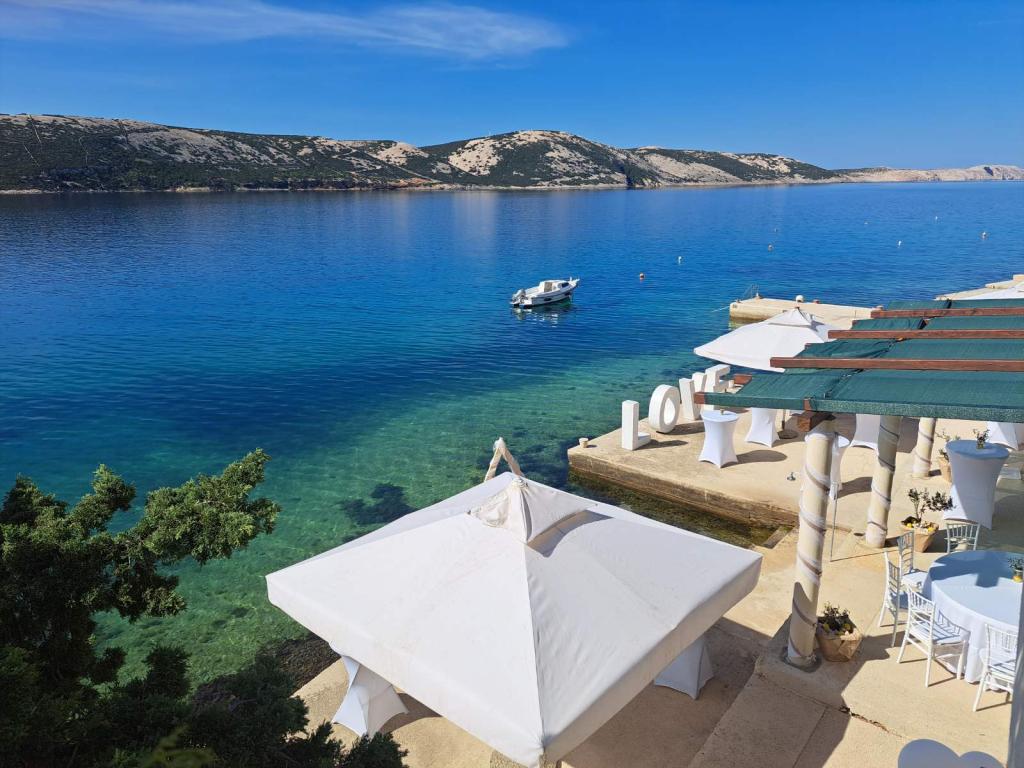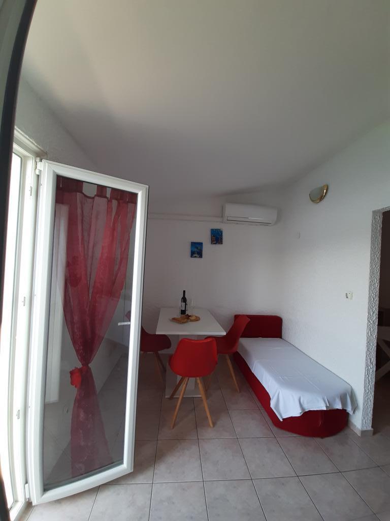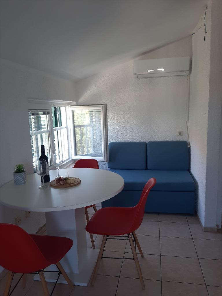 Cena apartmaja vključuje: posteljnino, brisače, WI FI, parkirišče, ležalnike, senčnike, stole in mize ter privez za manjši čoln.