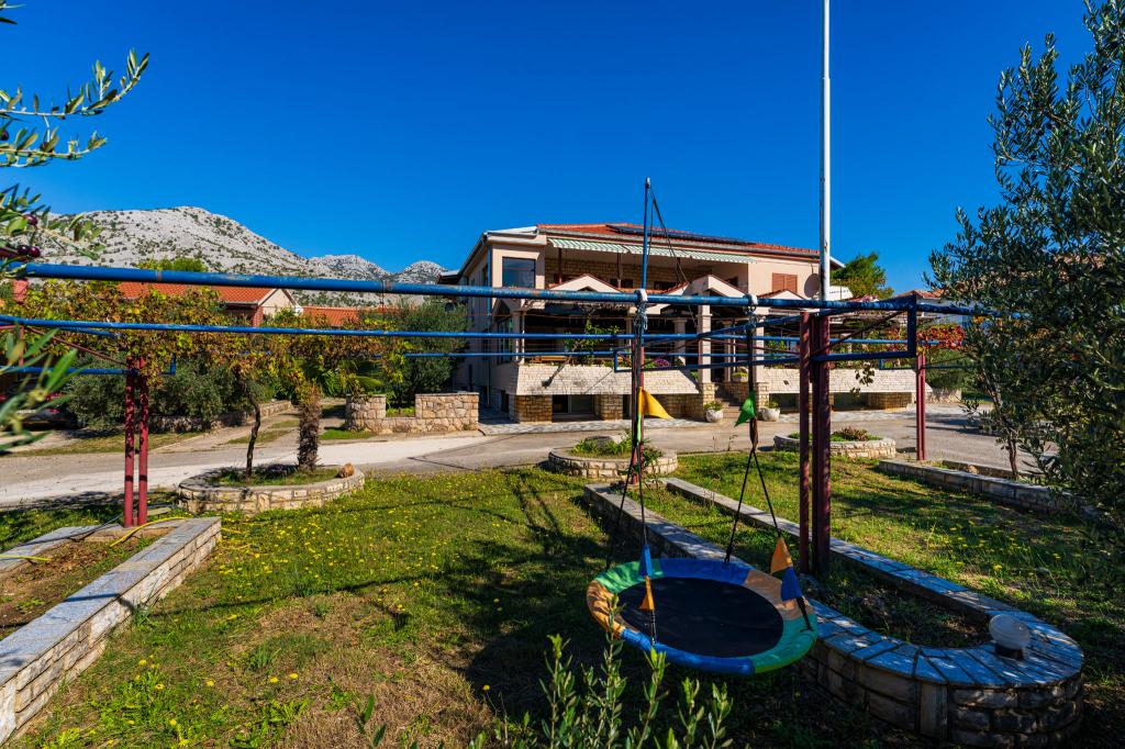 Apartmaji Adriana so idealno počitniško mesto za družine z otroki, pohodnike, pohodnike in skupine. Nudimo nastanitev v udobnih apartmajih za 2-4 oseb. Skupna zmogljivost objekta je do 30 ljudi. Vsi apartmaji so klimatizirani, s SAT-TV in popolnoma opremljeni za uporabo (posteljnina, brisače, posoda, posoda, jedilni pribor ...). Brezplačen WI-FI. Cena najema vključuje storitev dnevnega čiščenja stanovanja. Narodni park Paklenica je oddaljen 1,2 km, najbližja plaža pa je 200 m stran. Obdan je s prostornim dvoriščem z veliko zelenja in sence, ki je idealno za otroško igrišče. Pred stavbo je velik vrt s sedežno garnituro in prostorno parkirišče. V krogu 200 m od objekta se nahajajo: supermarket, bencinska črpalka, lekarna, zdravnik, restavracije, kavarna, menjalnica, frizer, trgovina s spominki, avtobusno postajališče, rezervacija izletov ...